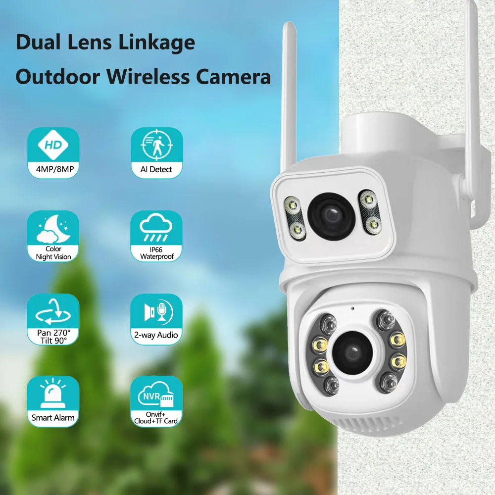 8MP 4MP двойной объектив двойной экран Wi-Fi камера водонепроницаемый цветной ИК ночного видения автоматическое отслеживание облачные Wi-Fi камеры наблюдения ICSEE