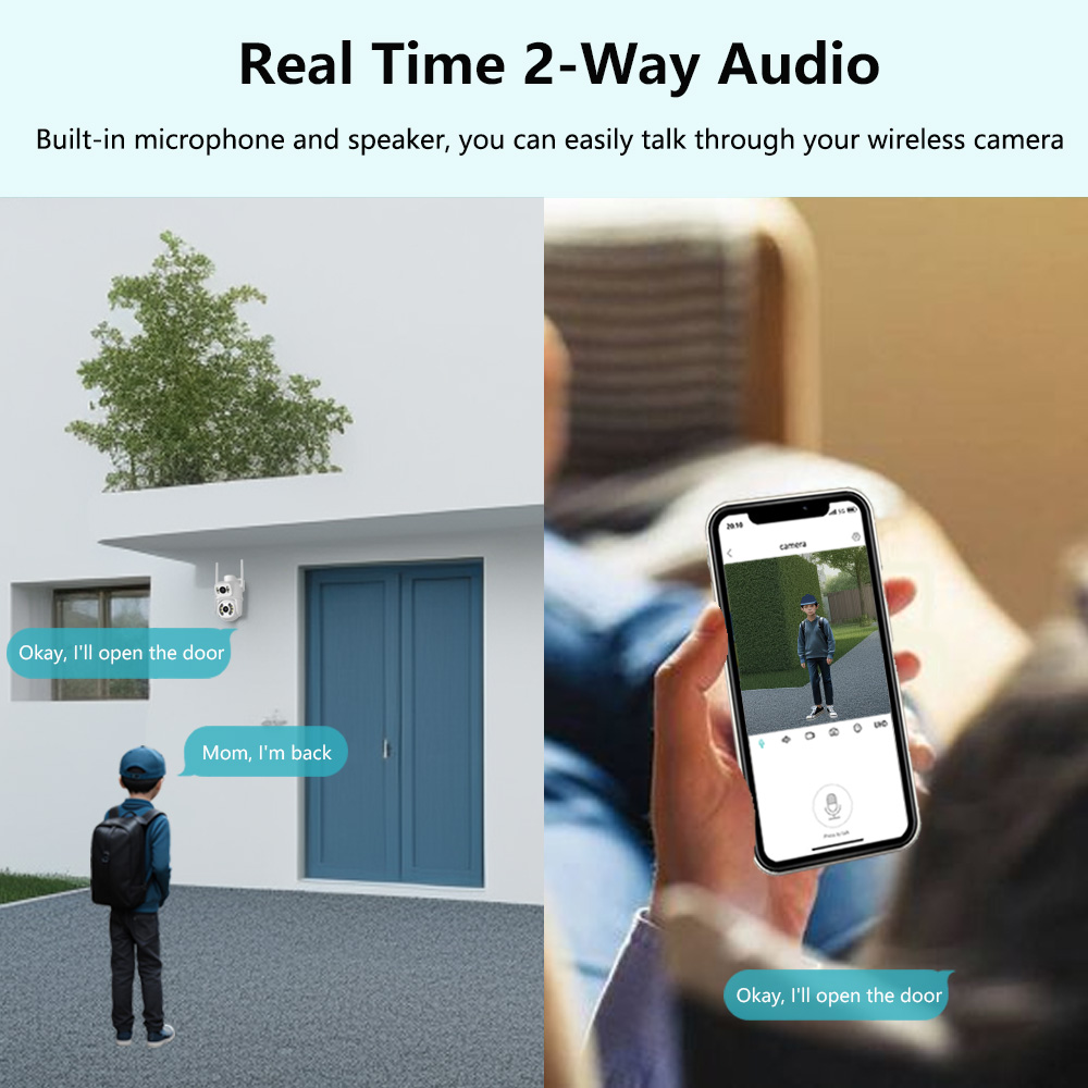 Эта система домашней камеры безопасности позволяет вам слушать и разговаривать через встроенный динамик и микрофон, которые работают напрямую через микрофон вашего смартфона. Наслаждайтесь удобным общением, когда отдыхаете или работаете.