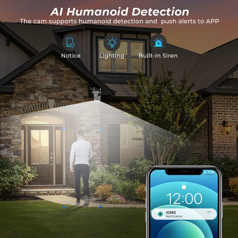 Быстро находит человеческие цели и немедленно отправляет уведомление на ваш телефон, позволяя вам видеть, что происходит где угодно. Он обнаруживает только человеческую форму и не срабатывает ложно для таких объектов, как автомобили и деревья.