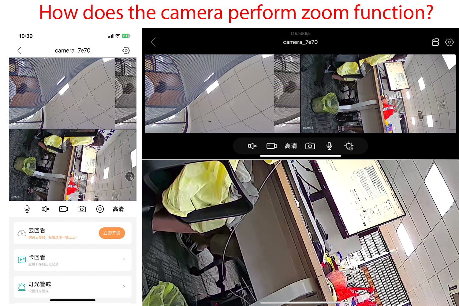 В приложении есть 2 видеоэкрана, один-камера с фиксированным положением, а другой-PTZ-камера.