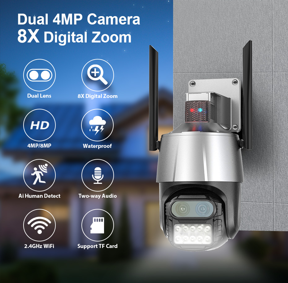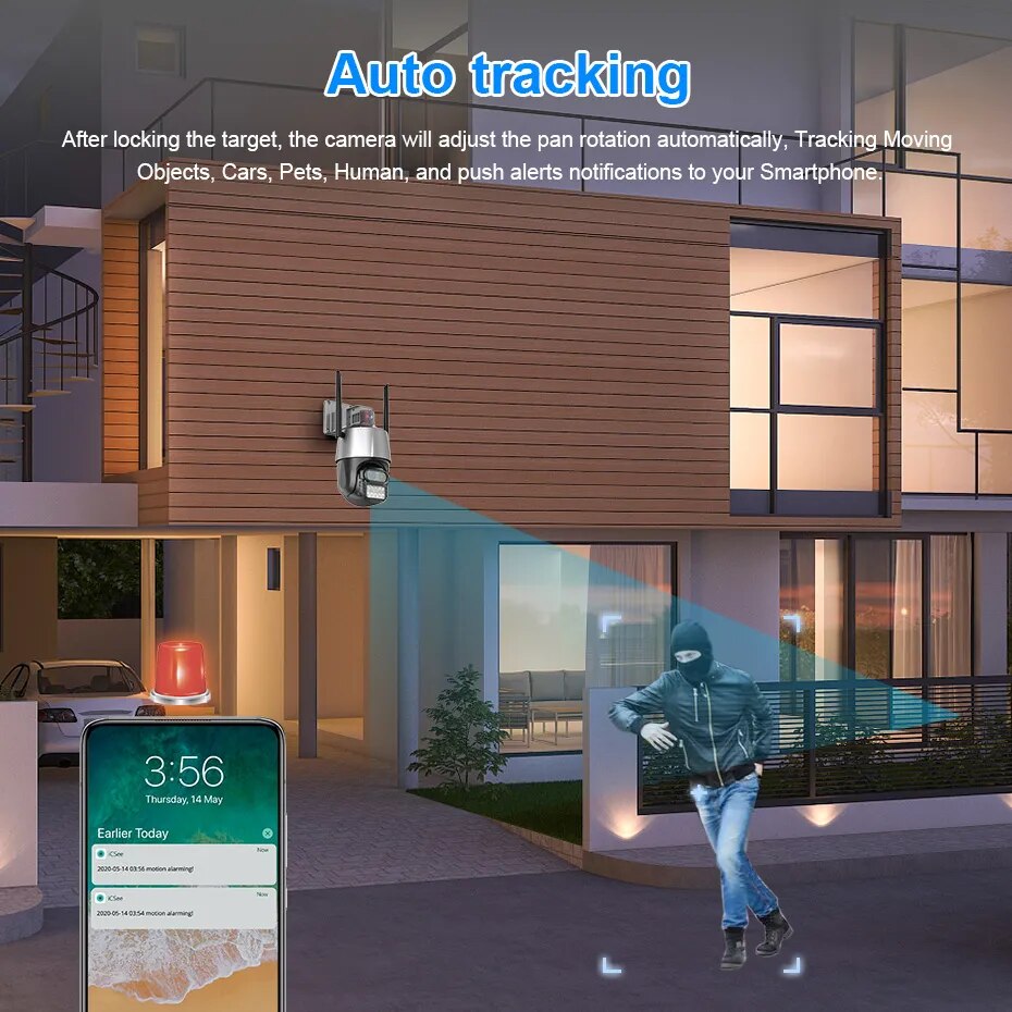 8MP 4K PTZ Наружная Wifi-камера с противоугонной сиреной