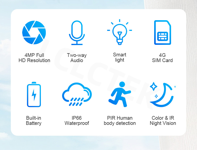 LCLCTEK 4G LTE SIM-карта 4MP Wifi с питанием от батареи Камера видеонаблюдения PIR Обнаружение Наружная IP66 Беспроводная камера видеонаблюдения