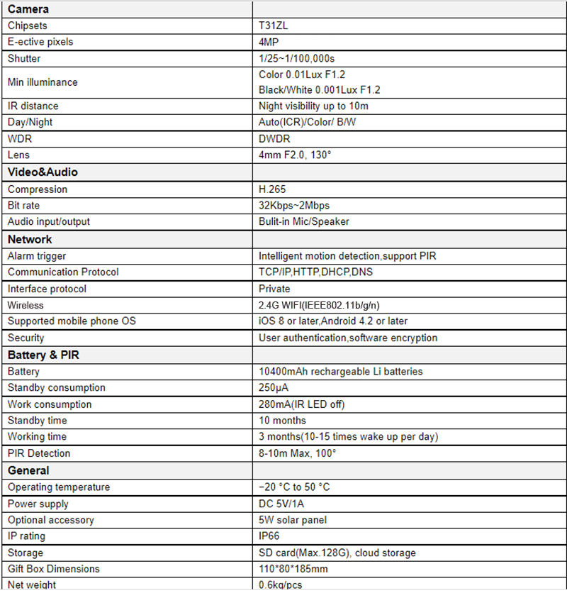 * Встроенные батареи 10400 мАч, время работы 2-3 месяца (Просыпайтесь 10-15 раз в день)