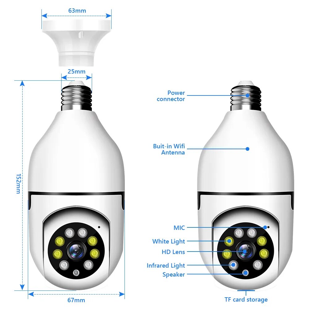 Функция двусторонней аудиосвязи позволяет слушать и говорить через камеру. С микрофоном и динамиком вы можете лучше понять детали, которые происходят вокруг вашего дома. Камера с лампой, проста в установке
