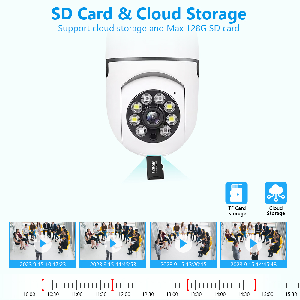 Три режима освещения, в дополнение к нормальному режиму дневного света и режиму ночного видения, когда сигнал тревоги возникает ночью, камера автоматически включает белый свет, чтобы увеличить экспозицию, предоставление вам цветных изображений без потери каких-либо деталей.