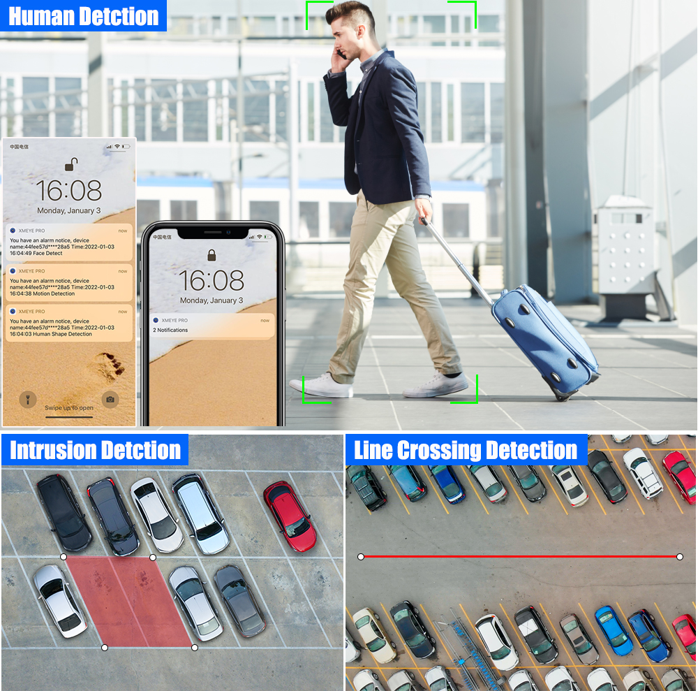 Вы можете создать несколько параметров обнаружения движения для камеры, включая обнаружение человеческого тела, обнаружение пересечения линий, обнаружение вторжений и обнаружение определенных регионов.Умное Распознавание лиц AI/Распознавание лиц/воспроизведение лиц
