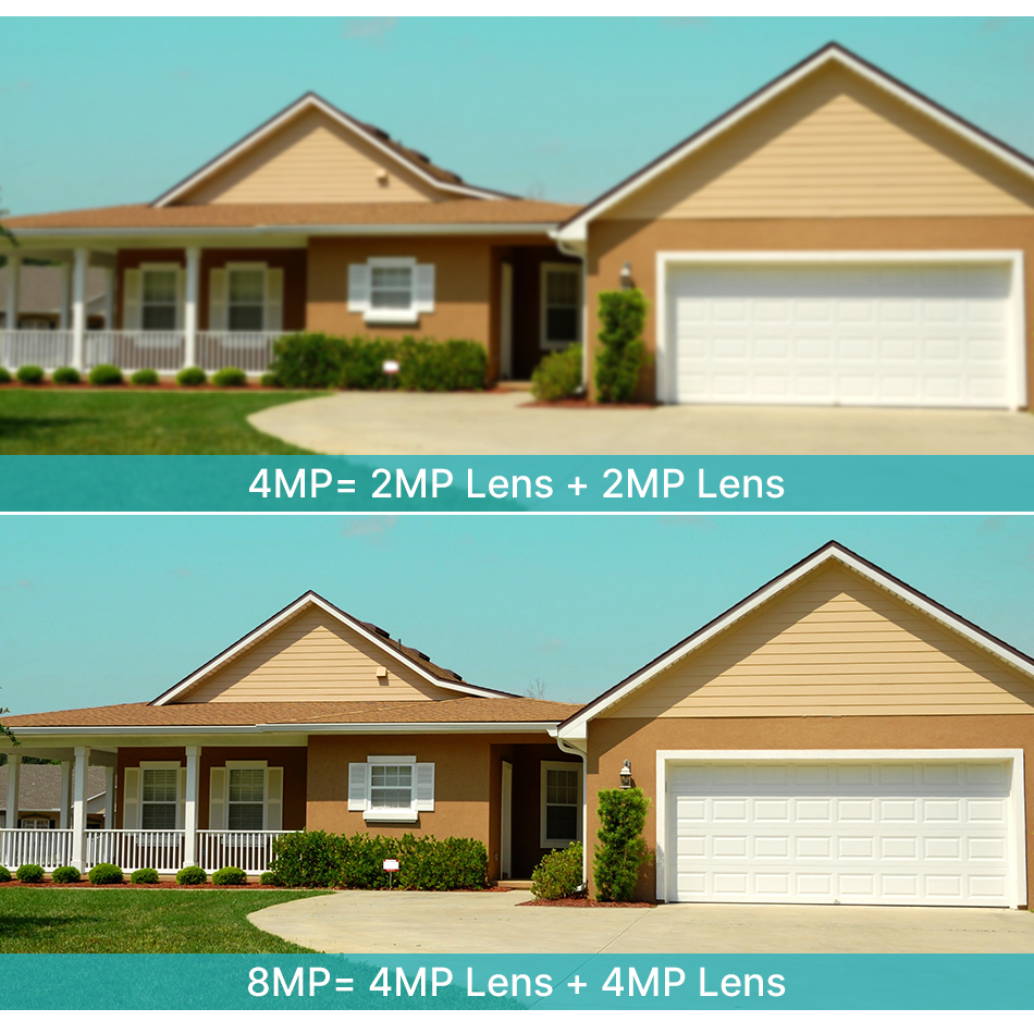 Двойной объектив и высокий пиксель для более четких изображений. Наша камера оснащена двумя 4-мегапиксельными (2MP) объективами, 2 объектива могут обеспечить лучшее изображение, более четкое, чем традиционные 4MP (2MP) .