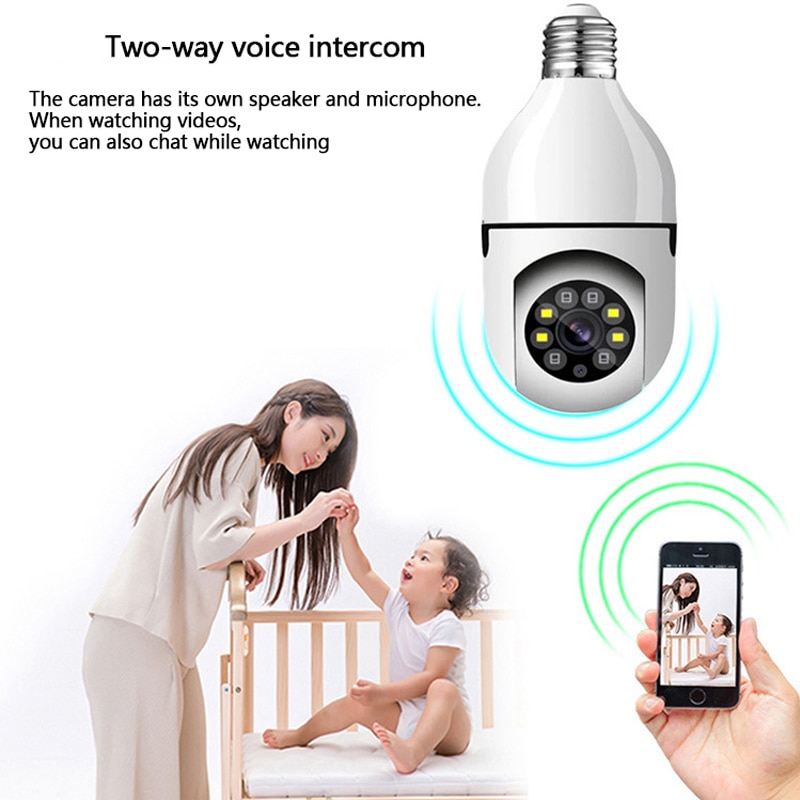 Камера видеонаблюдения с лампочками E27, цифровая полноцветная IP Wi-Fi камера с функцией автоматического слежения за телом, HD видеоняня с функцией ночного видения