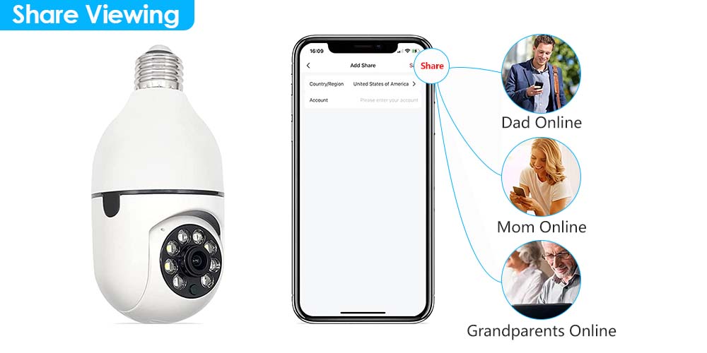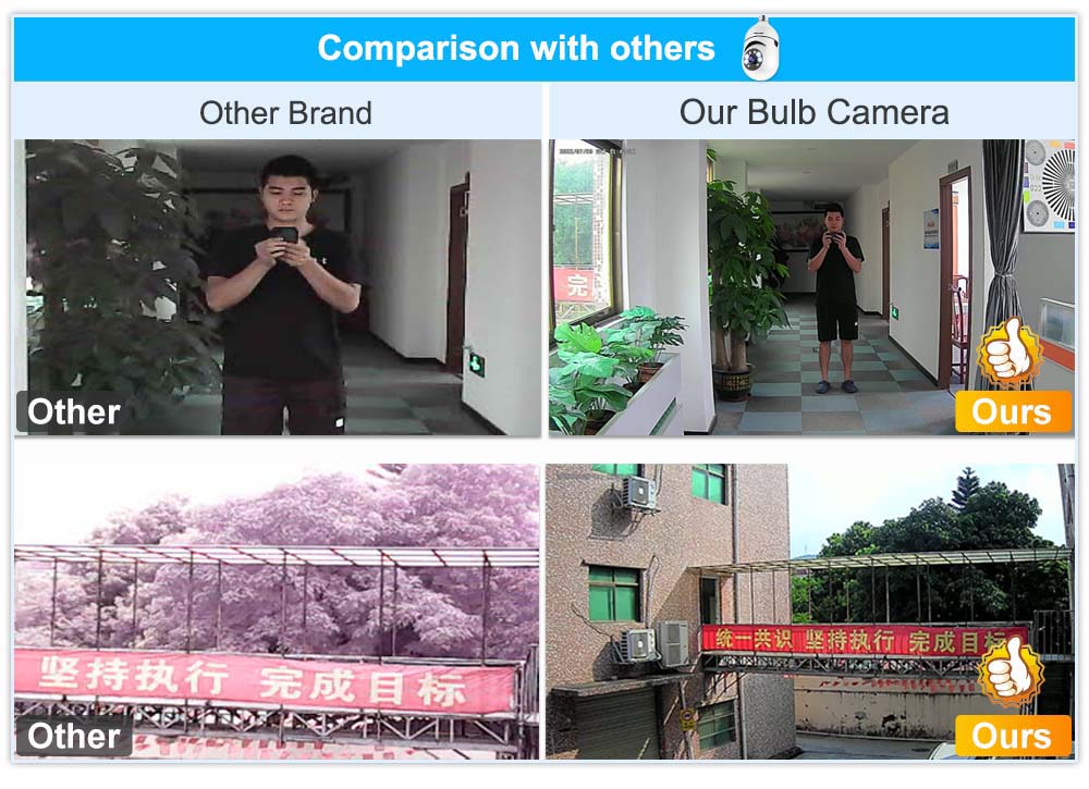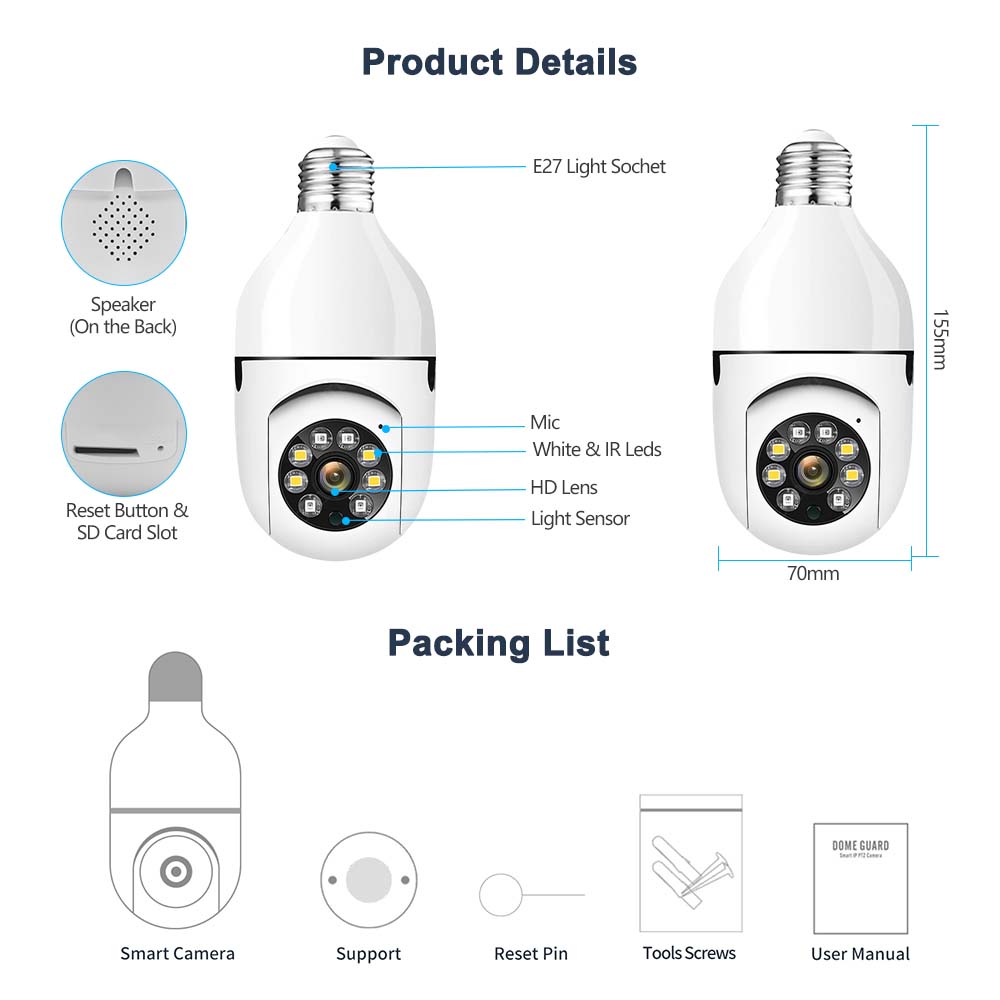 * Эту домашнюю камеру так же легко установить, как лампочку. Работайте с розеткой E27, просто нужно установить ее в розетку E27 и включить питание.