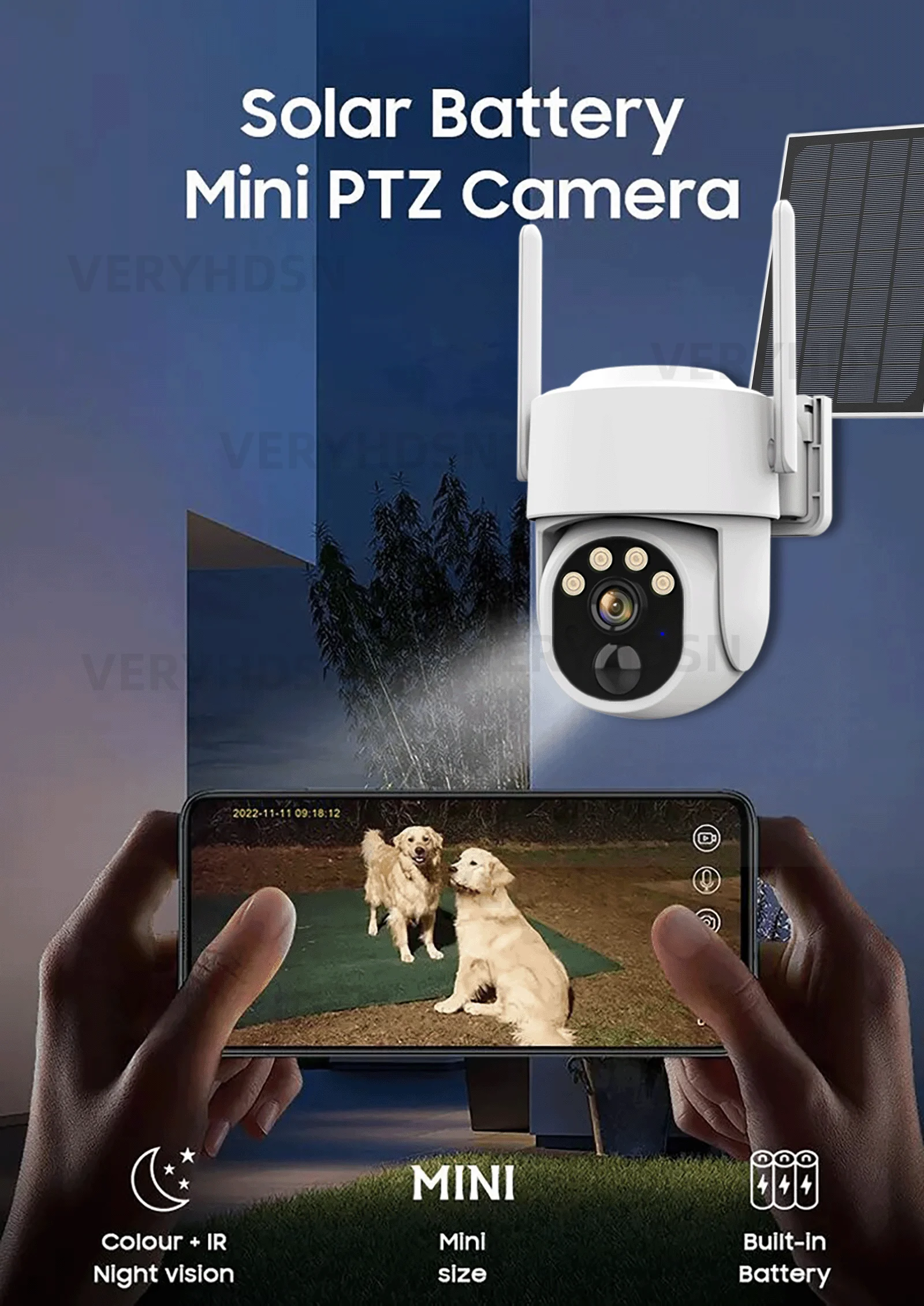 A: Правильно, камера видеонаблюдения встроена в аккумулятор 7800 мАч, все варианты включают аккумулятор.