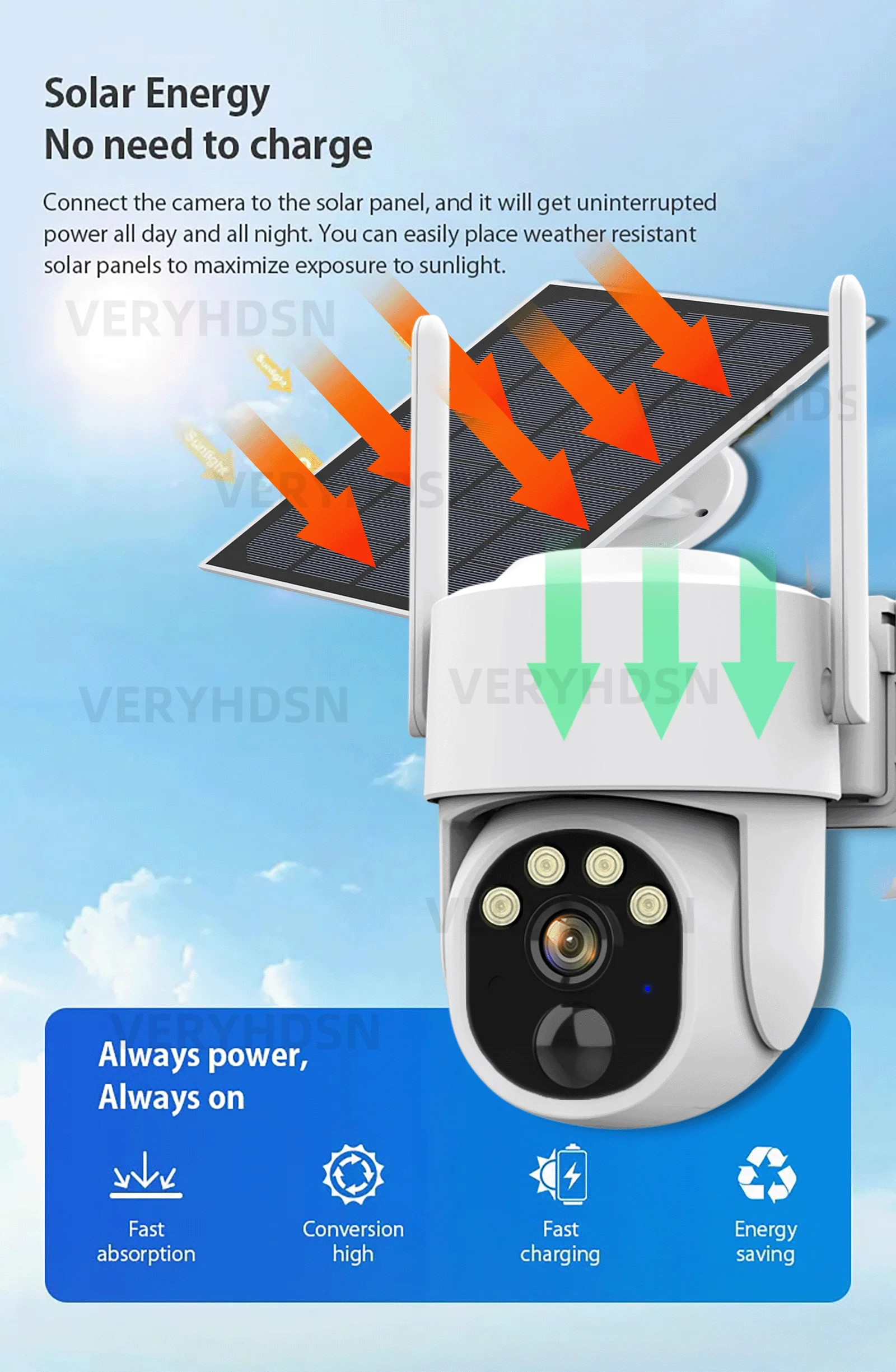 1 X Солнечная камера HD Len (TF-карта в комплект не входит, дополнительная покупка)
