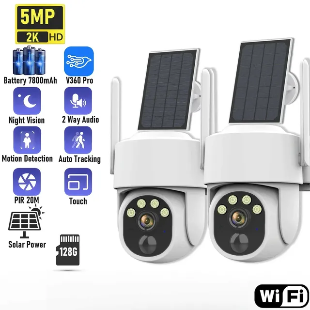 Камера видеонаблюдения с солнечной панелью, 5 МП, Wi-Fi, 2K, 7800 мА · ч, IP66