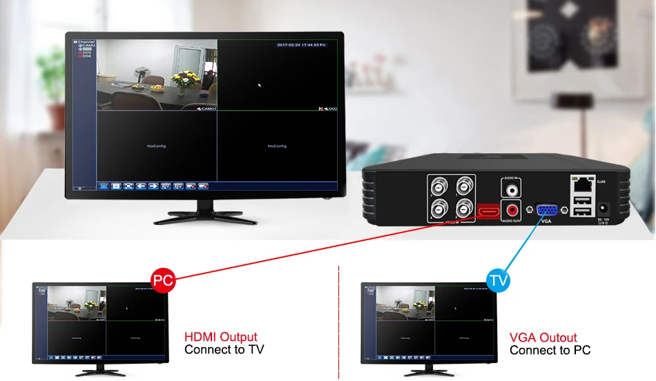 DVR Function 5 IN 1,Support AHD,IP,Analog,CVI,DVI Camera