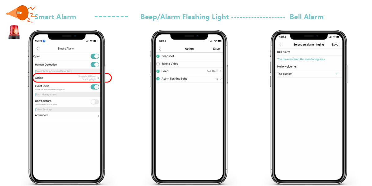 Real Push-уведомление в приложение для телефона или отправьте электронное письмо с фотографией или загрузите фото/видео на FTP-сервер при обнаружении движения, оно также поддерживает запись тревожного видео на SD-карту.