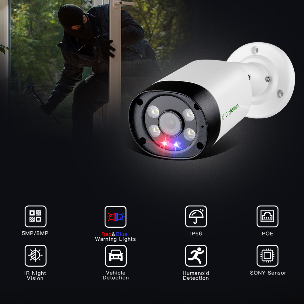 Камера видеонаблюдения XMeye E, 5 МП, 8 Мп, POE, IP, SONY IMX335, 415 дюйма, с лицевым аудио, красные и синие сигнальные огни, Onvif, CCTV, Безопасность видеонаблюдения