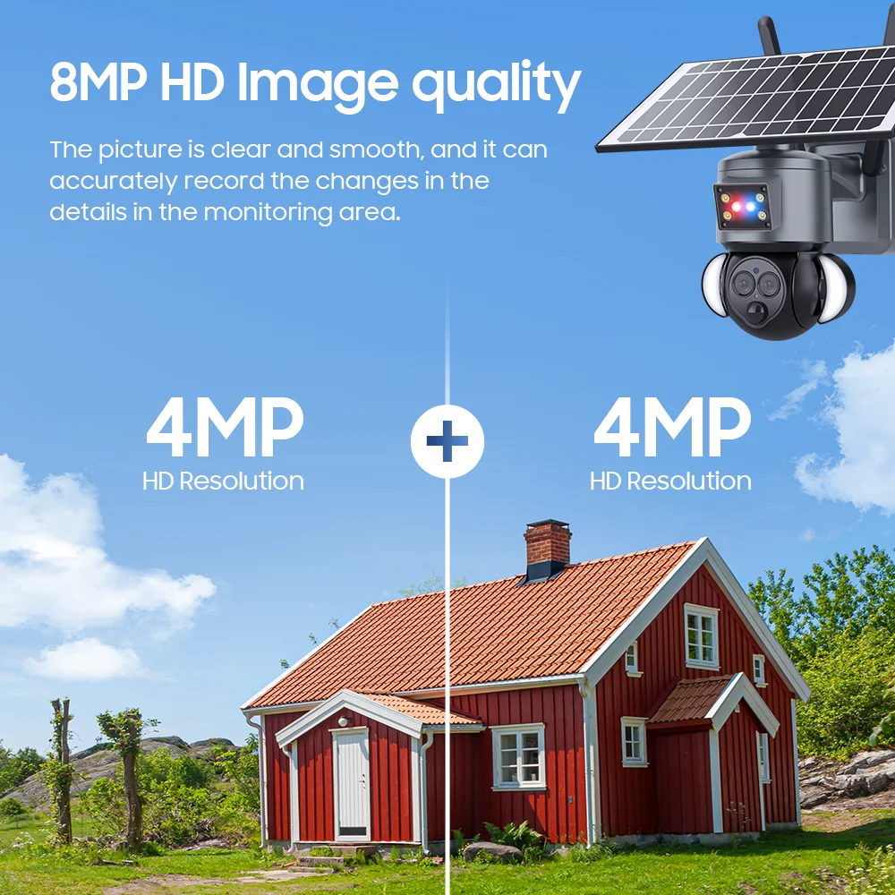 Камера видеонаблюдения ZAOMIYOS, 4K, 8 Мп, 12X зум, на солнечной батарее, Wi-Fi, с двойным объективом, 4G SIM, наружная PTZ IP-камера с датчиком присутствия
