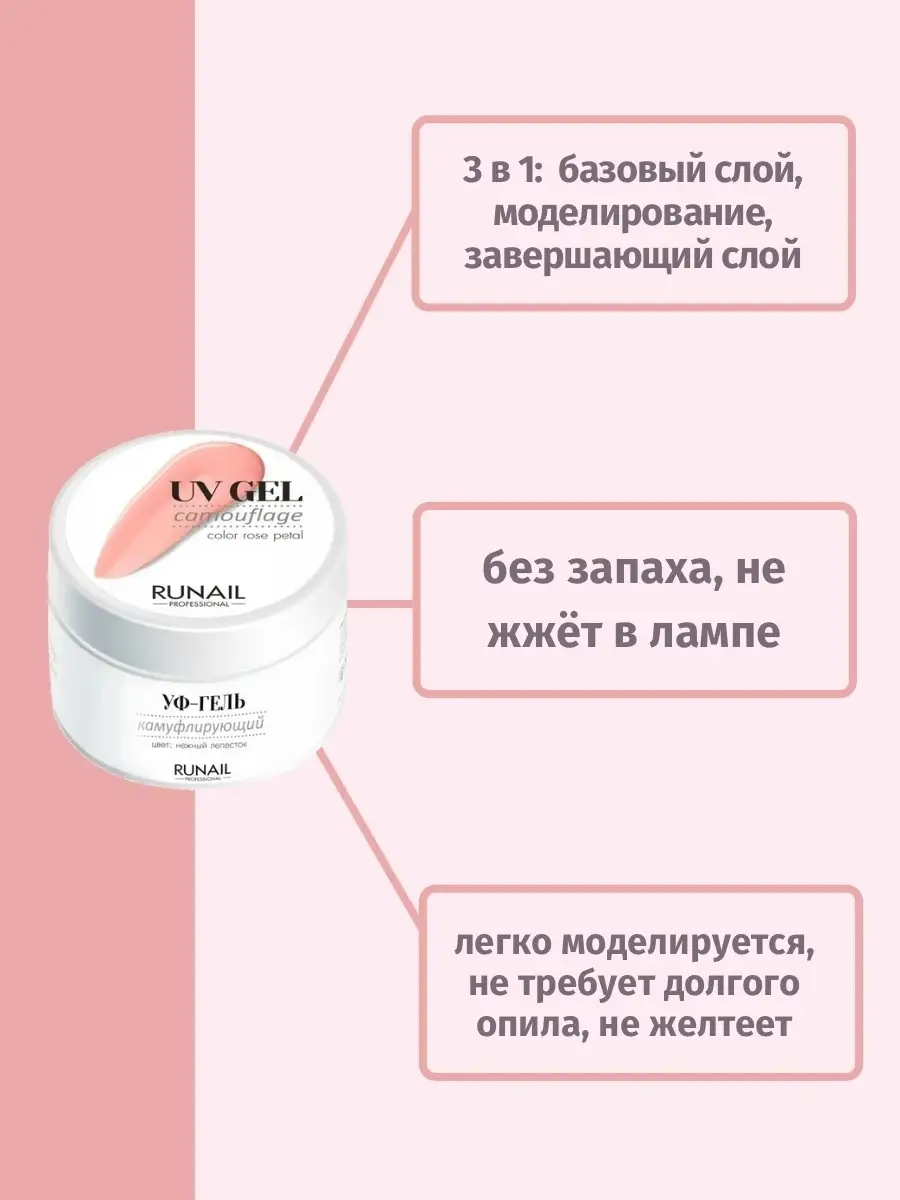 Камуфлирующий гель RuNail 15 мл нежный лепесток (3448)