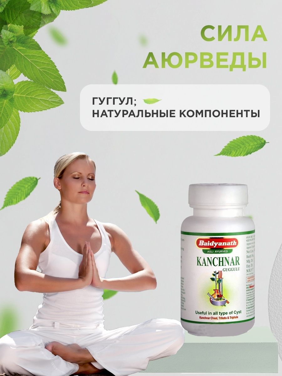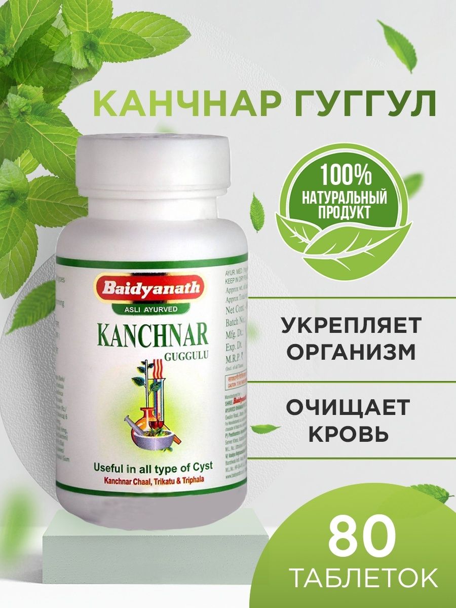 Описание: Kanchnar guggul Байдьянатх - препарат, который эффективно очищает кровеносную систему, лимфу, нормализует уровень холестерина и лейкоцитов в крови, восстанавливает работу внутренних органов. Помимо прочего, средство помогает при варикозном расширении вен и тромбофлебите, справиться с которыми обычными средствами крайне сложно. Оно также полезно при инфекционных заболеваниях, ангине, гриппе, пневмонии, так как оказывает охлаждающее воздействие и устраняет бактериологический очаг при лихорадочных состояниях.