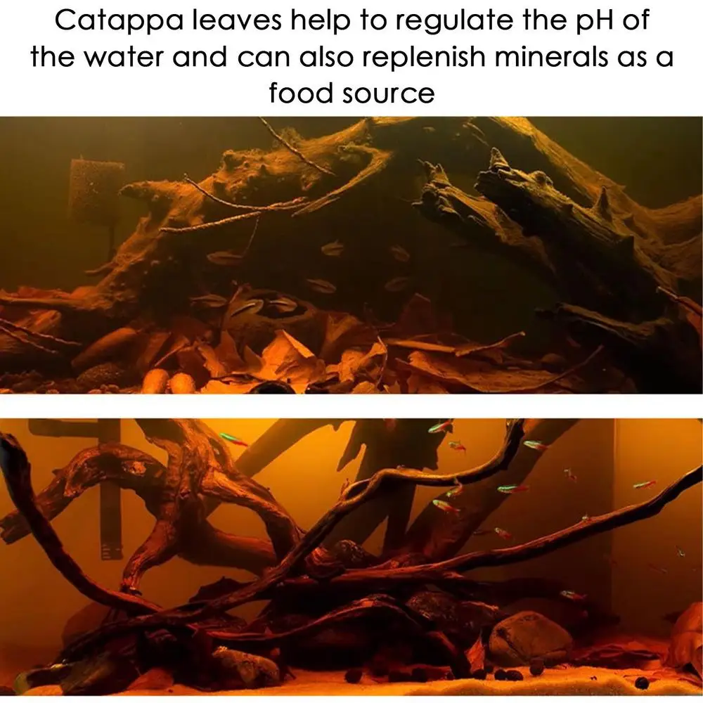 Наш лист миндаля индейцев листьев катаппы чист и безопасен для рыб Бетта и других аквариумных существ. Эти листья регулируют pH воды и смягчают свет в вашем аквариуме, создавая более здоровую и успокаивающую среду. Просто Кипятите листья в кипящей воде в течение минуты, прежде чем положить их в резервуар. Предоставьте своим рыбкам Бетта лучший уход, которого они заслуживают.