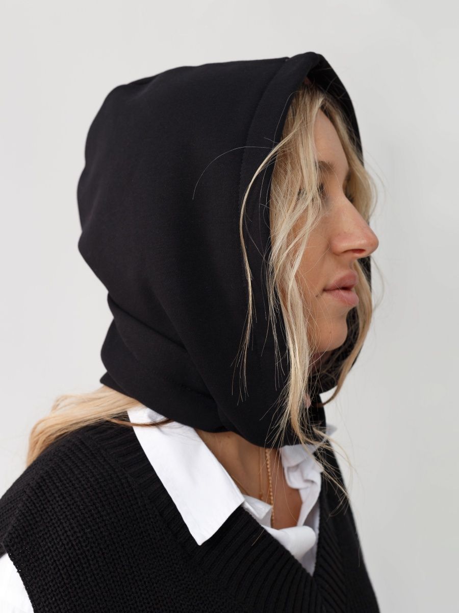 Описание: Трендовый головной убор капор - модный аксессуар, который может заменить шапку, снуд и капюшон. Капор женский и для девочек изготовлен из футера высшего качества. Состав основного материала 80% хлопок и 20% полиэстер. Демисезонный капор отлично сочетается с пальто, пуховиком, курткой, кожаной курткой. Съемный капюшон, манишка, платок - можно назвать его как угодно. В христианстве, как и в исламе, принято покрывать голову. Поэтому надевая капор поверх основного платка можно стильно утепляться. Стильный черный аксессуар с черной подкладкой из футера с начесом согреет Вас в любую непогоду.