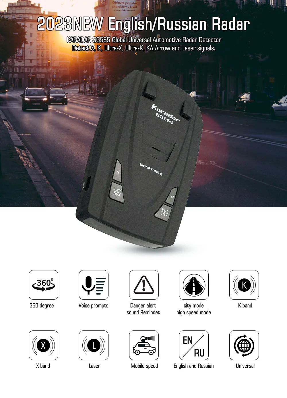 Karadar SG565 радар-детектор для автомобиля с фирменной английской и русской голосовой сигнализацией