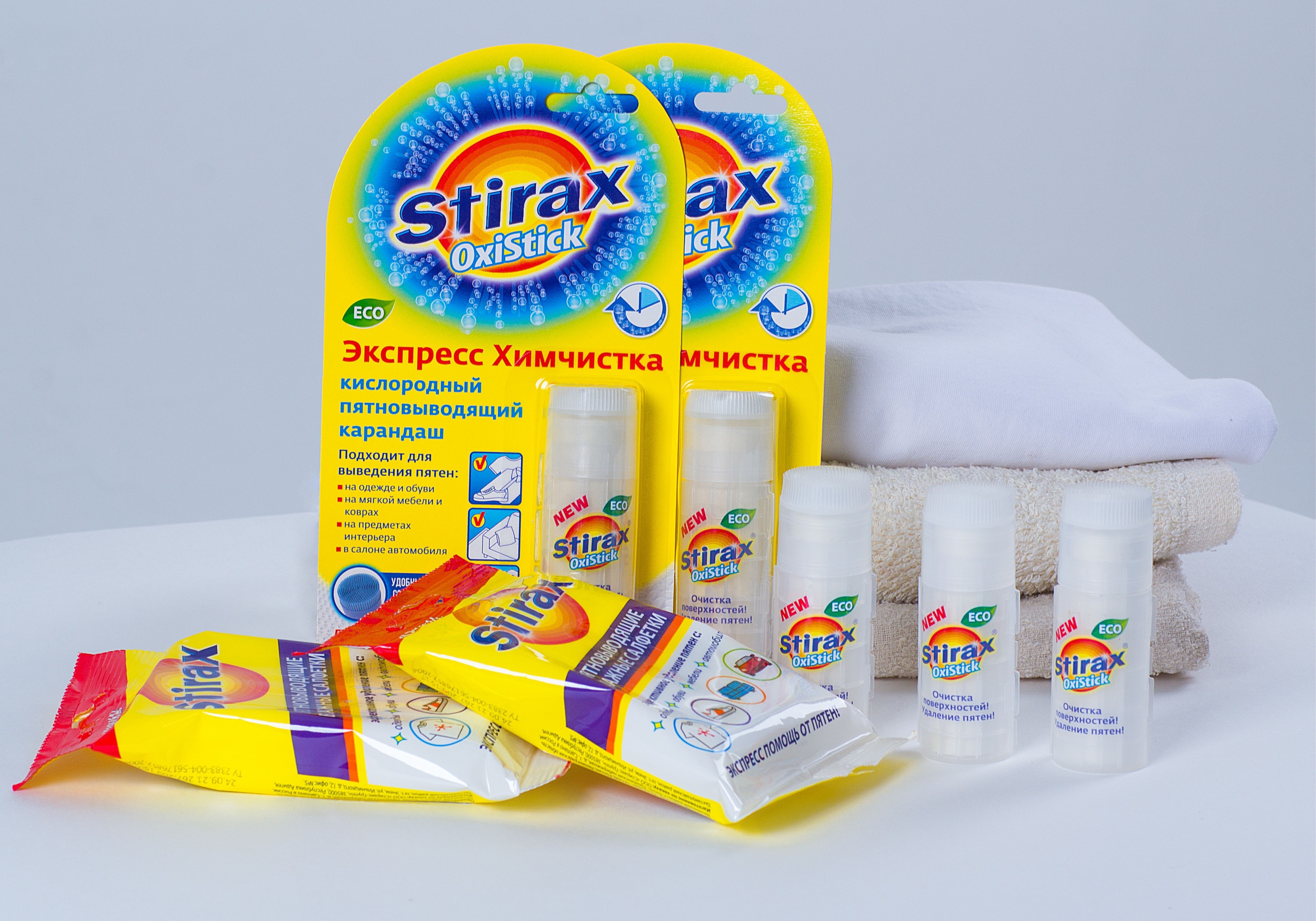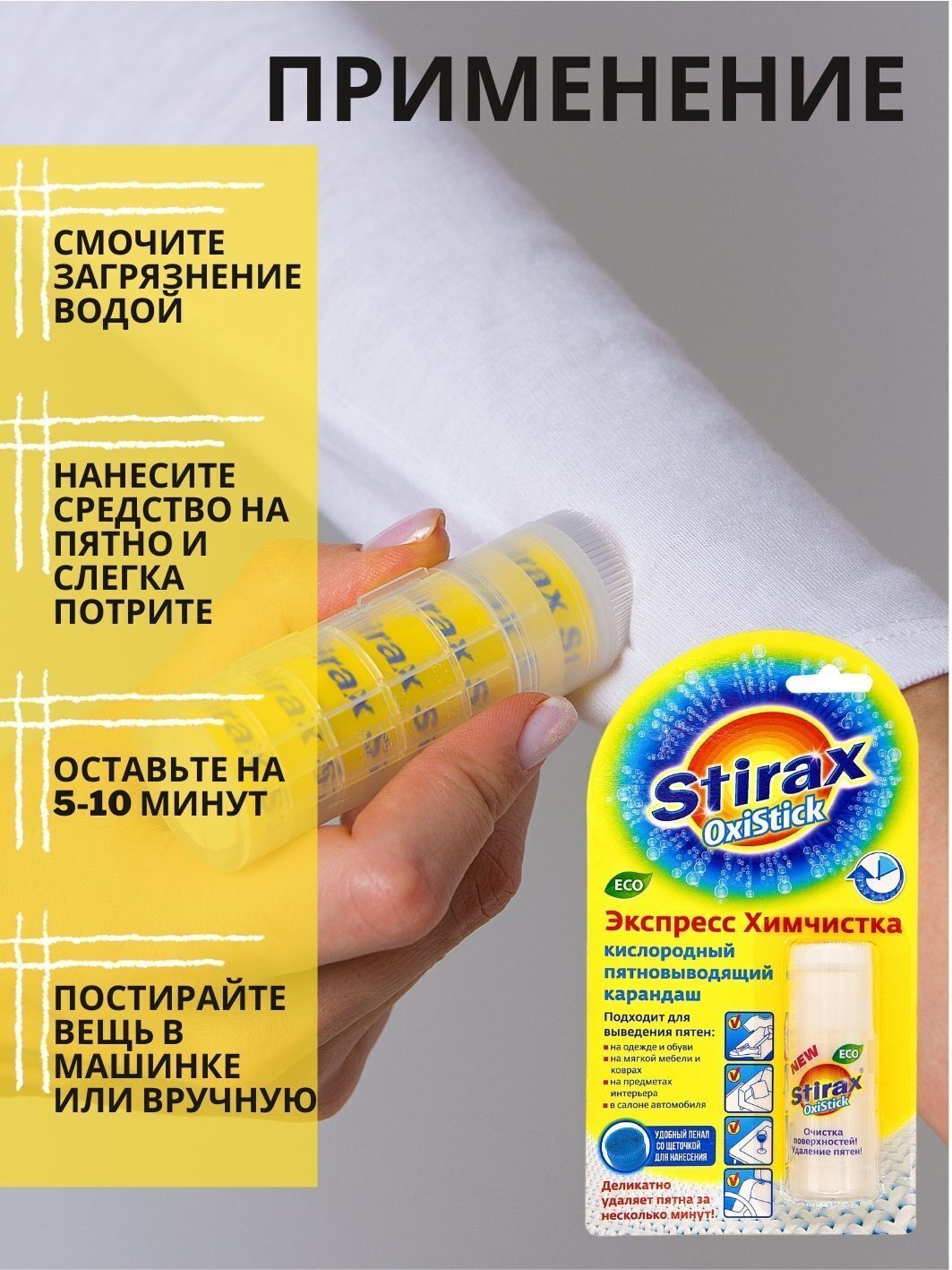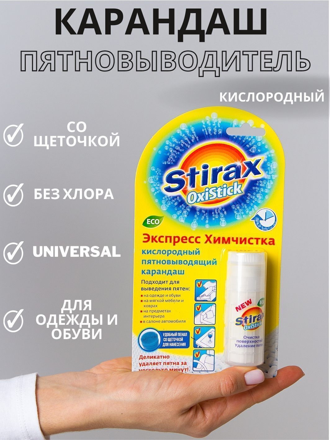 Карандаш пятновыводитель с щеточкой в футляре STIRAX / отбеливатель кислородный для ткани / для обуви / одежды / для детского цветного и белого белья / универсальный