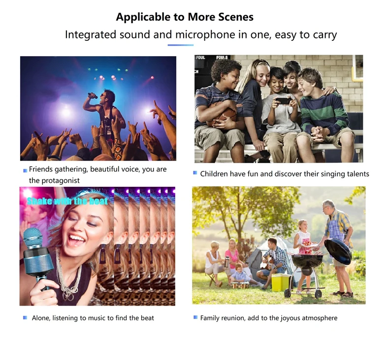 • Микрофон караоке, снятие стресса, делает людей счастливыми, и это wИдельно используется. Самое главное в микрофоне-это качество звука. Это популярный и особенный предмет.