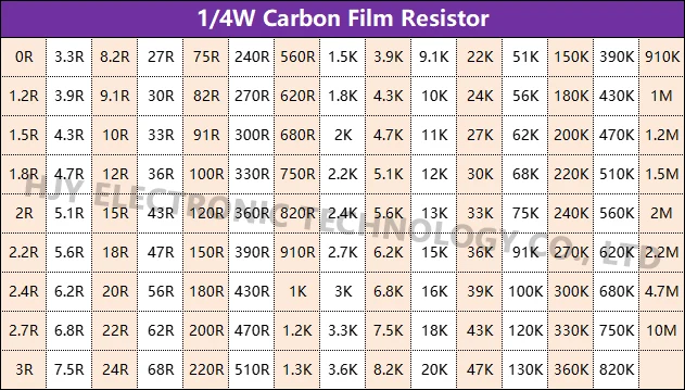 Карбоновые пленочные резисторы 0,25 Вт 0R-10M 5.6R 10R 1K 33K 47K 100R 220 330 2K3 1M/R/K/M