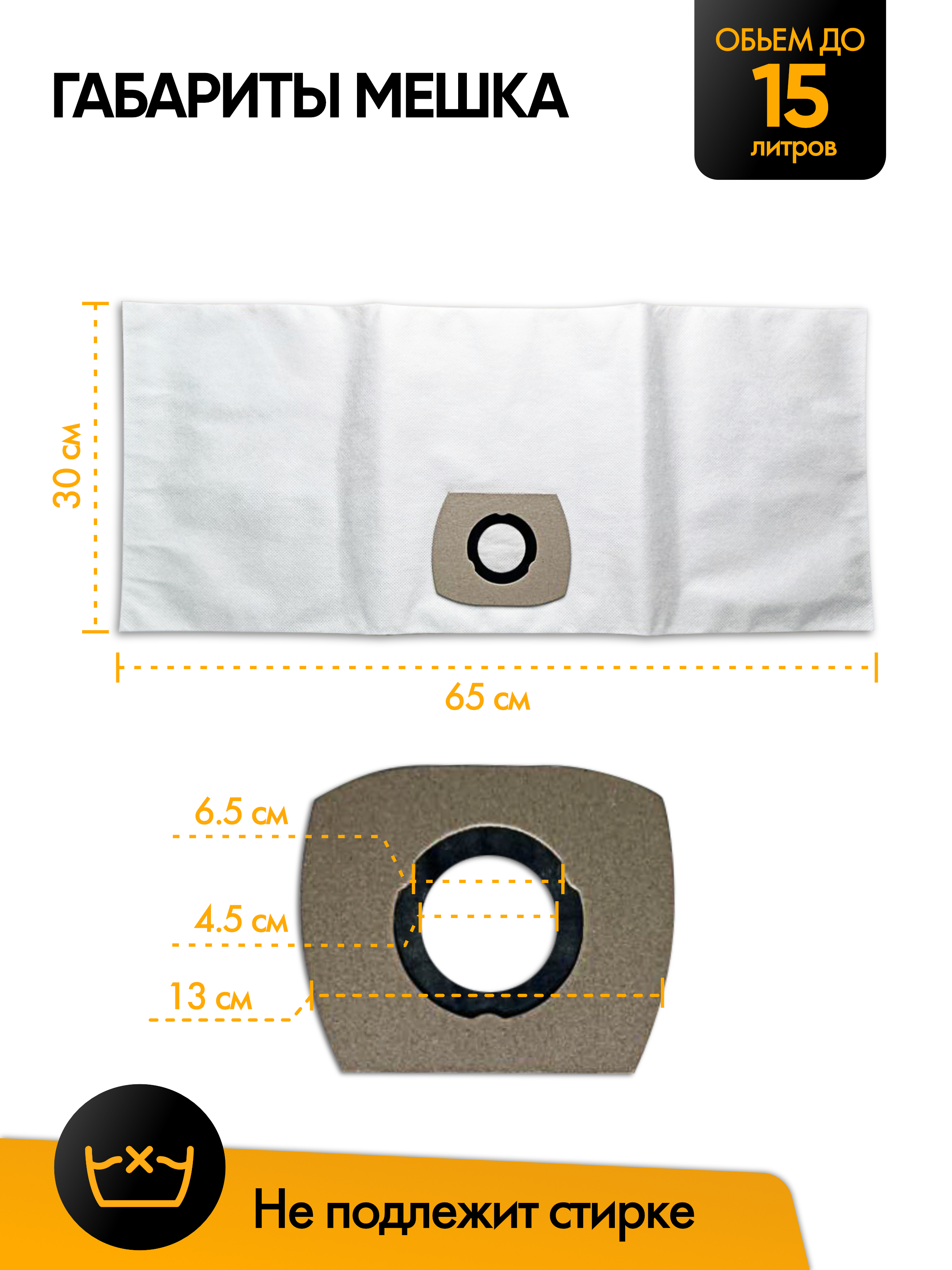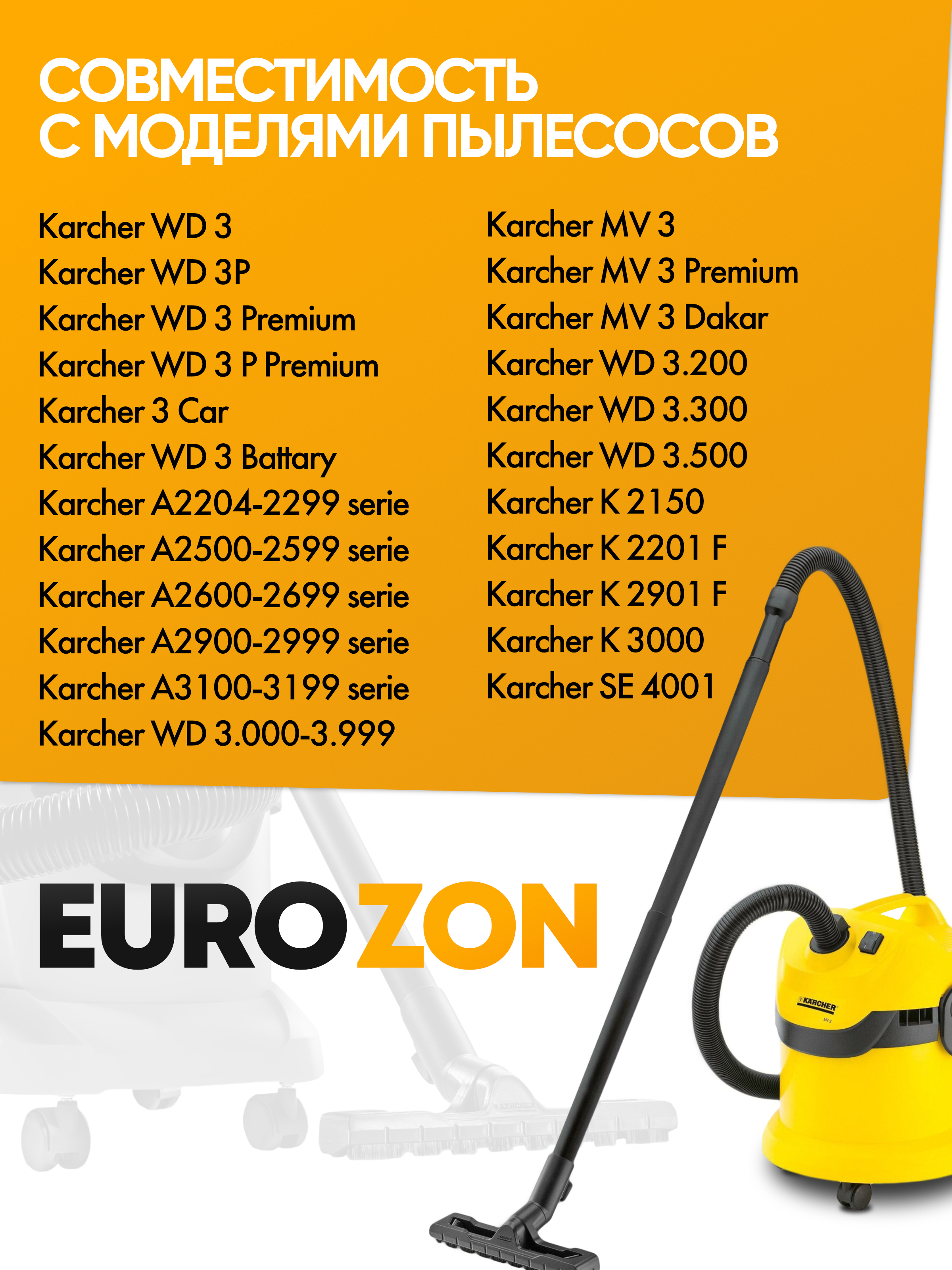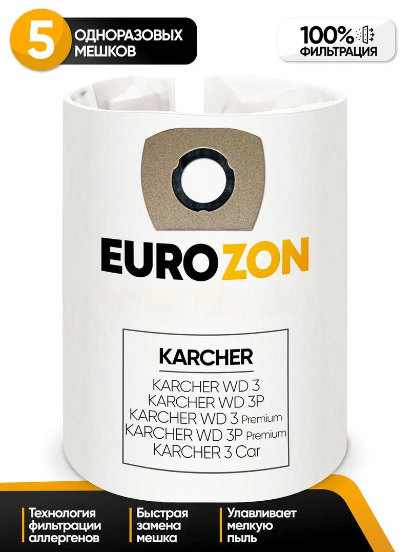 Описание: Текст при отключенной в браузере загрузке изображенийОдноразовые мешкиДля них не страшны острые предметы, случайно попавшие внутрь во время уборки, качественный мешок не лопнет и не повредится. Они гигиеничны, так как из них вам не нужно вытряхивать пыль и очищать от загрязнений. Достаточно просто достать из пылесоса пакет и выбросить его в мусорное ведро. Единственное аспект с которым вы столкнетесь - это необходимость регулярно пополнять запасы.Текст при отключенной в браузере загрузке изображенийМатериал мешковСинтетические мешки для пылесосов, как правило, изготовляют минимум из 3 слоев фильтровального материала. В сравнении с бумажными пылесборниками, эти пылесборники характеризуются повышенной прочностью к порезам и высокими фильтрующими характеристиками. В синтетических мешках работает процесс электростатической фильтрации, который позволяет достичь лучших результатов по улавливанию пыли. Этот процесс основан на том, что воздух, проходя через пылесборник, электростатично заряжает микроволокна фильтрующего материала. Это позволяет удерживать мельчайшие частички пыли внутри пылесборника. По причине высокой прочности мешки из синтетического материала хорошо подходят для сбора мелкого строительного мусораТекст при отключенной в браузере загрузке изображенийГабариты и комплектацияВ упаковке находится 5 одноразовых мешков для пылесоса KARCHERТекст при отключенной в браузере загрузке изображений