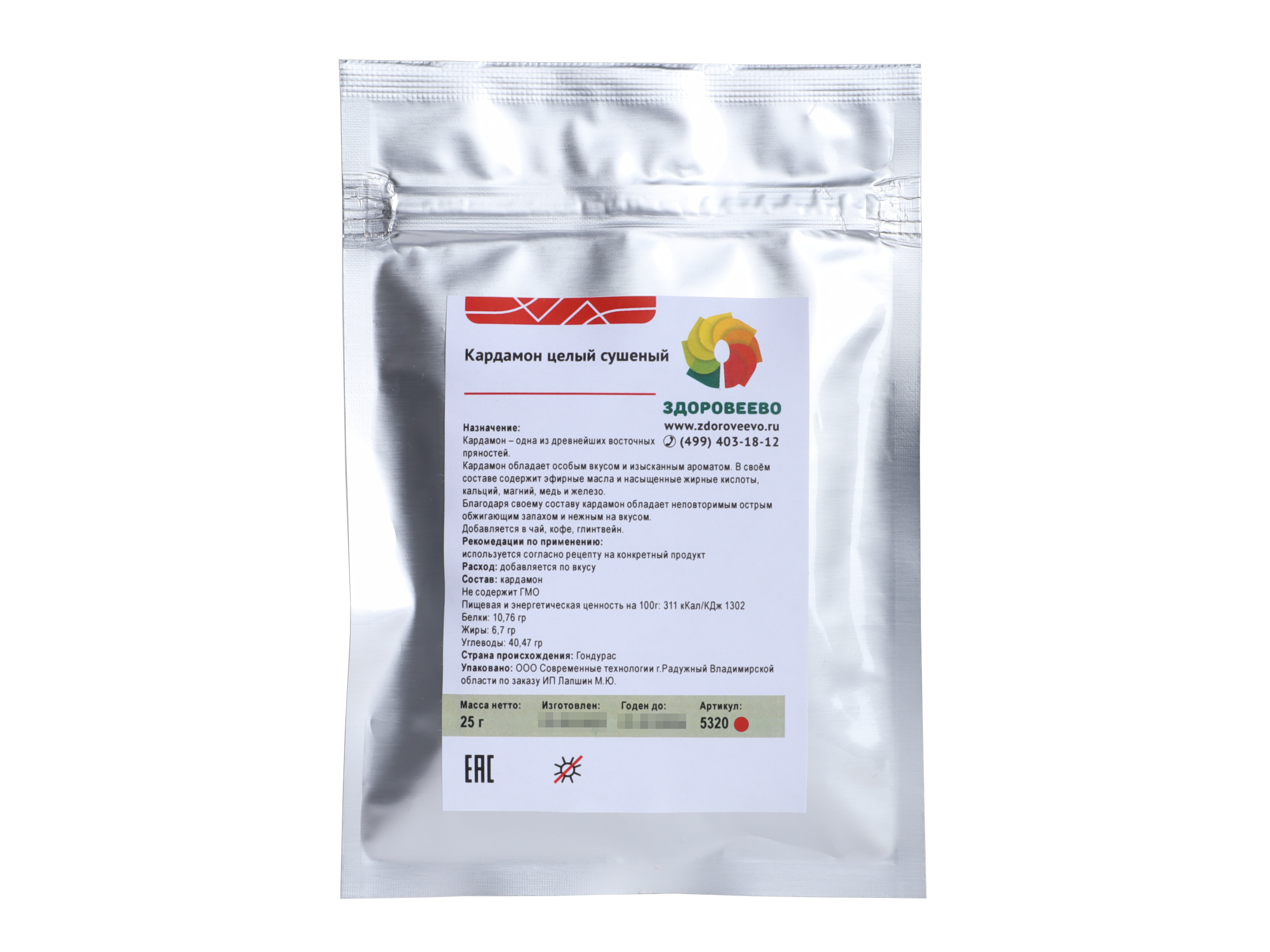 Кардамон целый сушеный, пакет 25 г