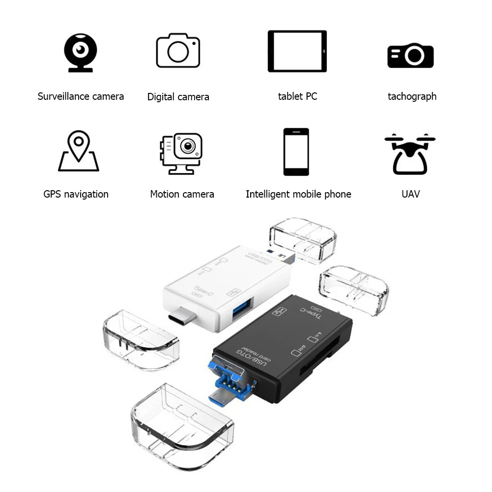 Чтение компьютерных карт, удобный офис: Поддержка компьютера/планшета Type-C, рабочего стола для удобного чтения камеры мобильного телефона и других карт памяти устройства