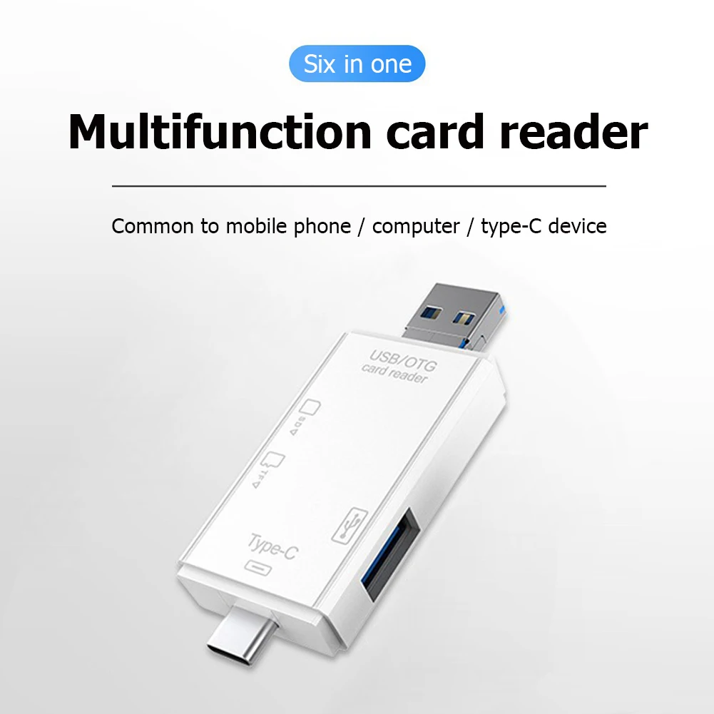 Многофункциональный кардридер 6-в-1: универсальный для мобильного телефона/компьютера/устройств Type-C