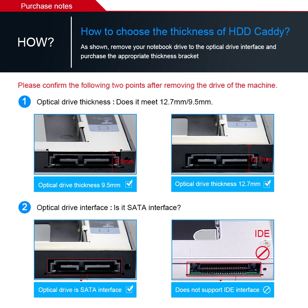 9.5MM Thickness Caddy Support 9.5/9/7(mm) HDD