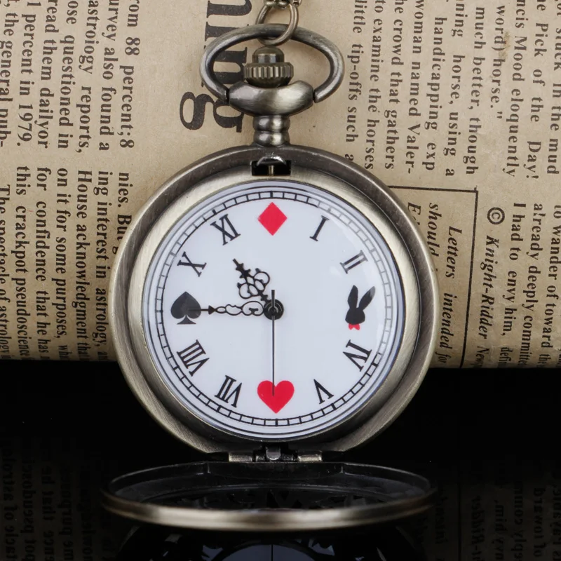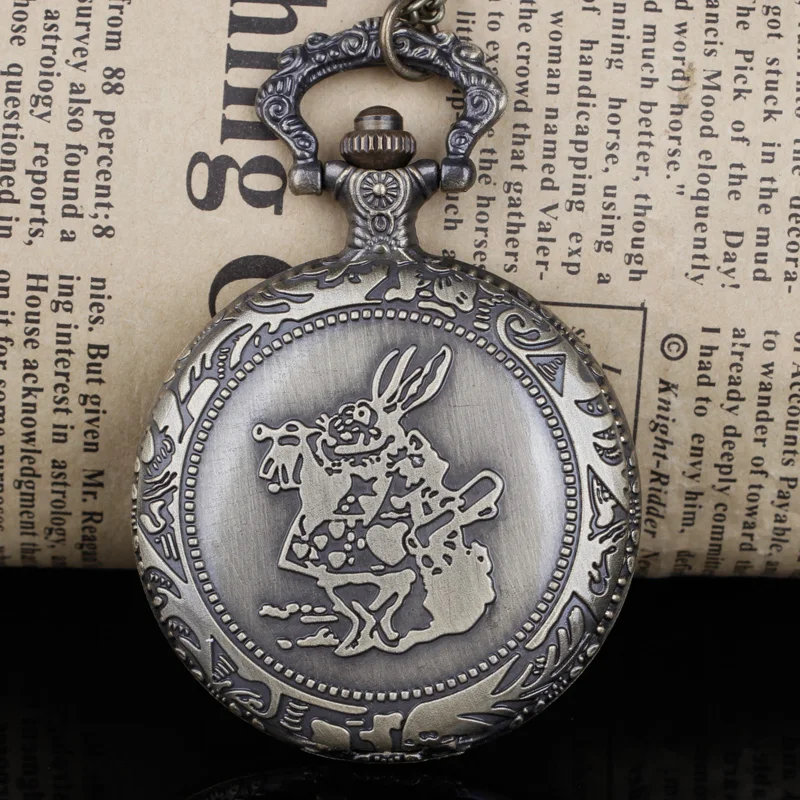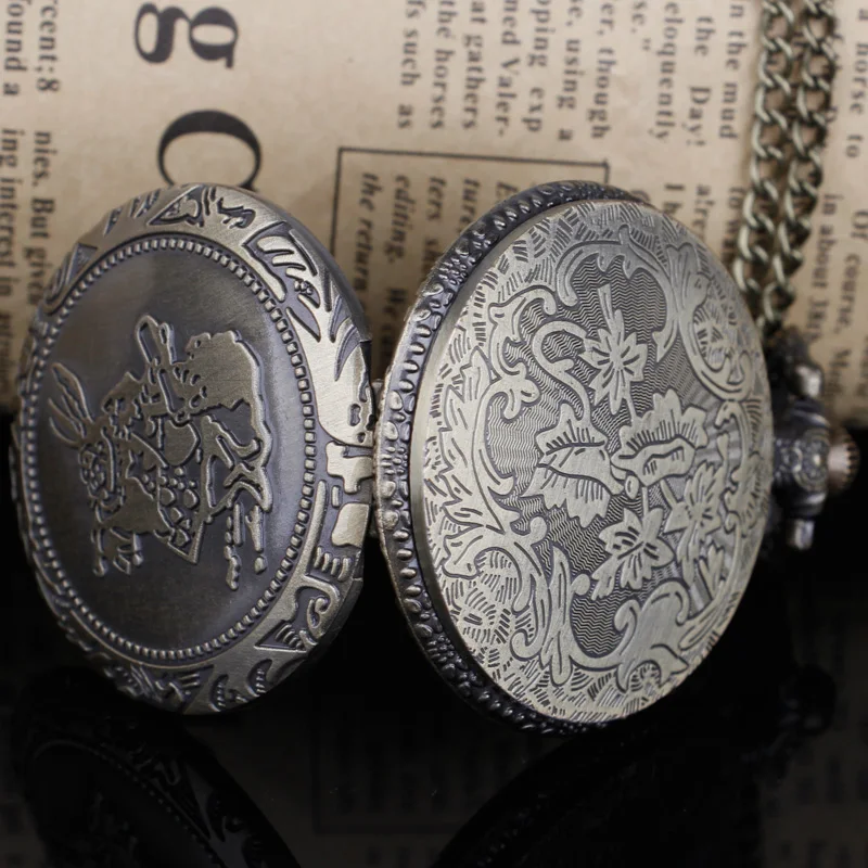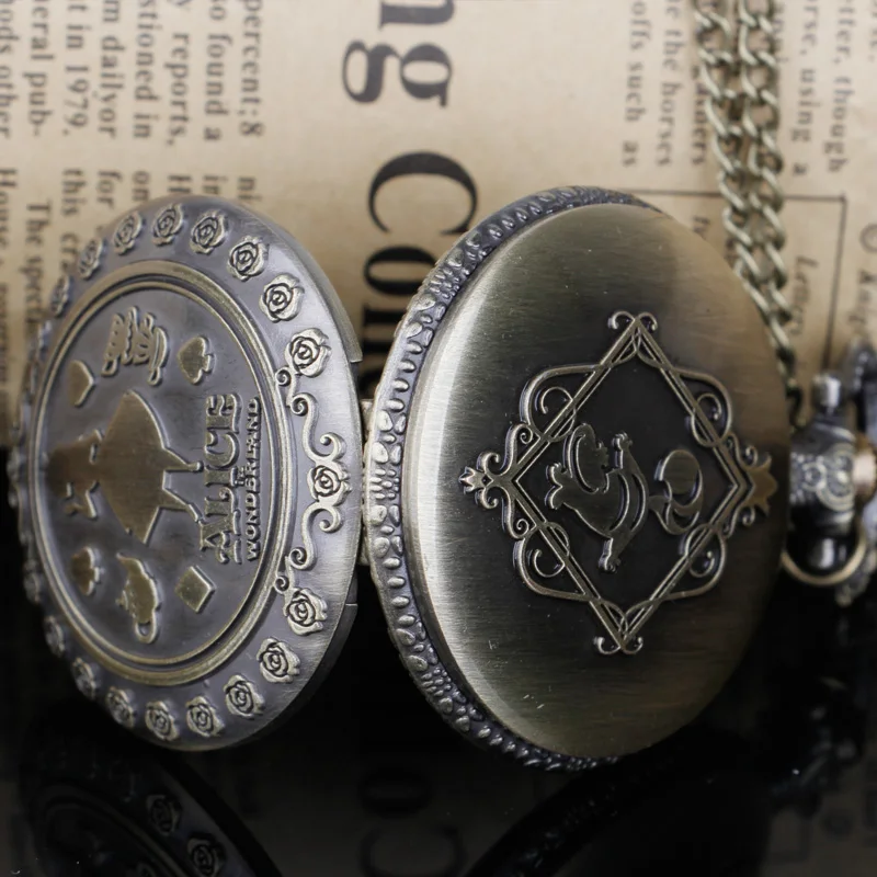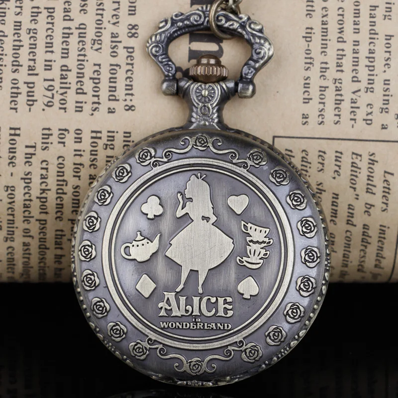 Карманные часы в стиле ретро Алиса, бронзовые винтажные кварцевые карманные часы с цепочкой и ожерельем, мужские и женские часы, подарок