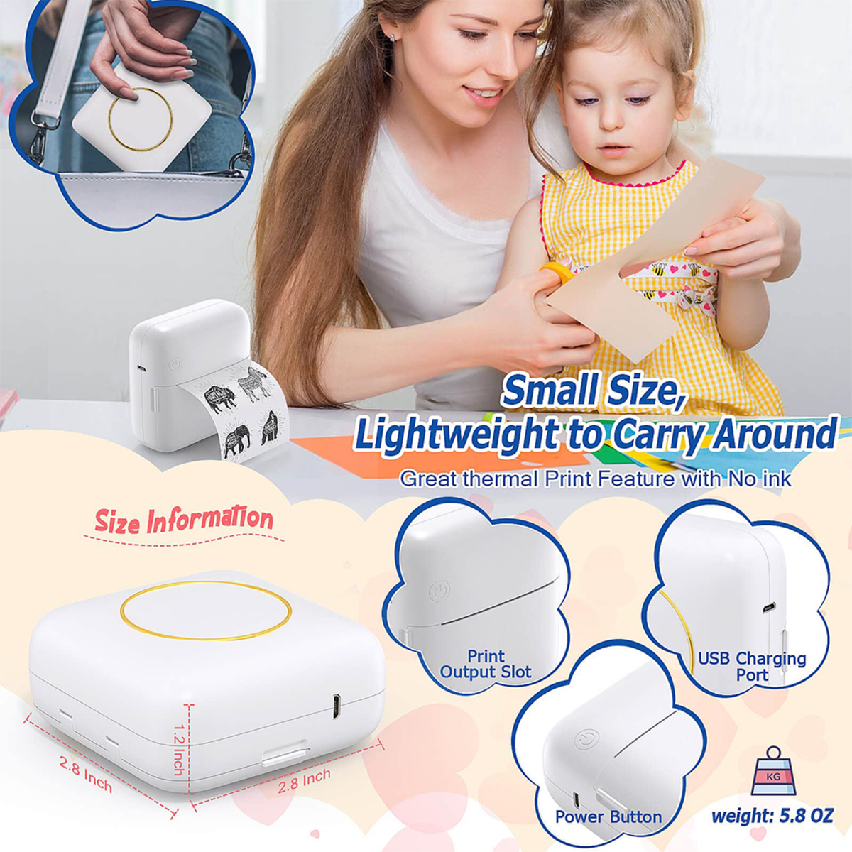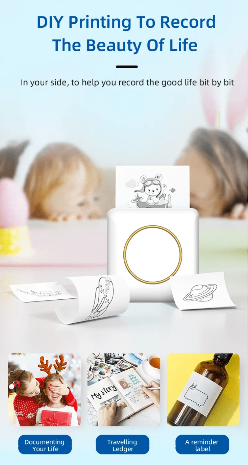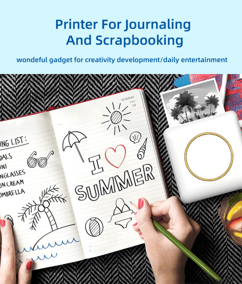 Карманный мини-фотопринтер для телефона, беспроводной термопринтер для планов, журналов, организации, художественного творчества, подарков, розовый