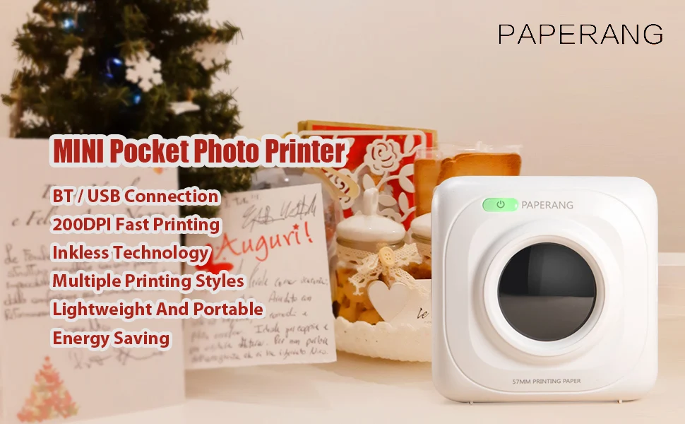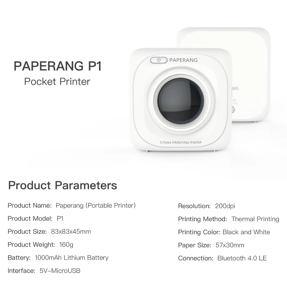 Карманный мини-фотопринтер PAPERANG P1, 203 точек/дюйм, BT4.0