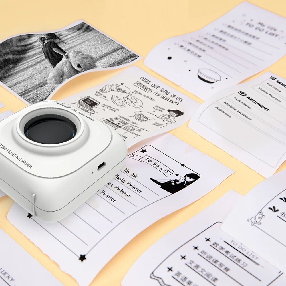 Различные вещи, такие как фотографии, записи, списки дел, могут быть напечатаны PaperangТехнология термопечати может печатать более быстрым, более энергоэффективным способом