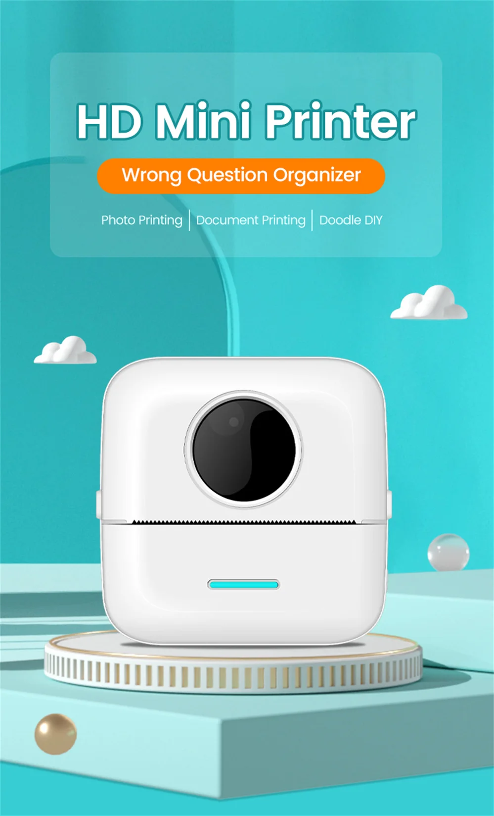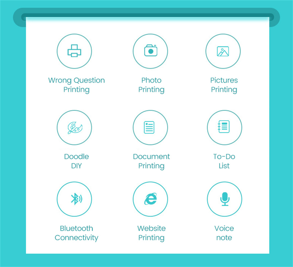 6: Упаковка принтера: 1 принтер + 1 рулон белой бумаги для печати (не пастообразной) + линия зарядки + руководство.
