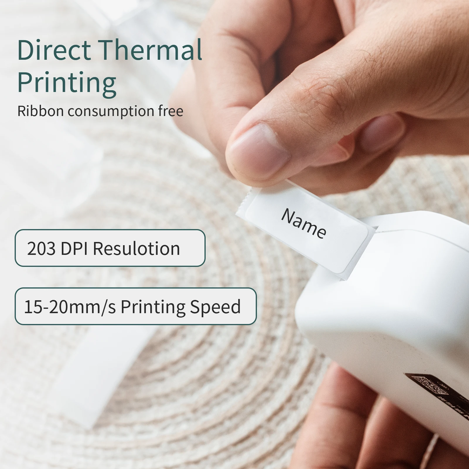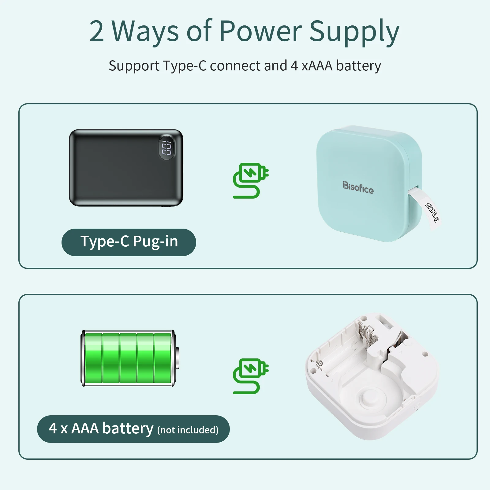 Экономьте больше денег-Обновленная новая версия этикетировочной машины может использовать плагин Type-C или 4 батарейки AAA. Теперь вы можете печатать где угодно. Отличная производительность-разрешение печати 203 точек на дюйм, низкий уровень шума печати, принтеру не нужен чернильный картридж при использовании, низкие эксплуатационные расходы.