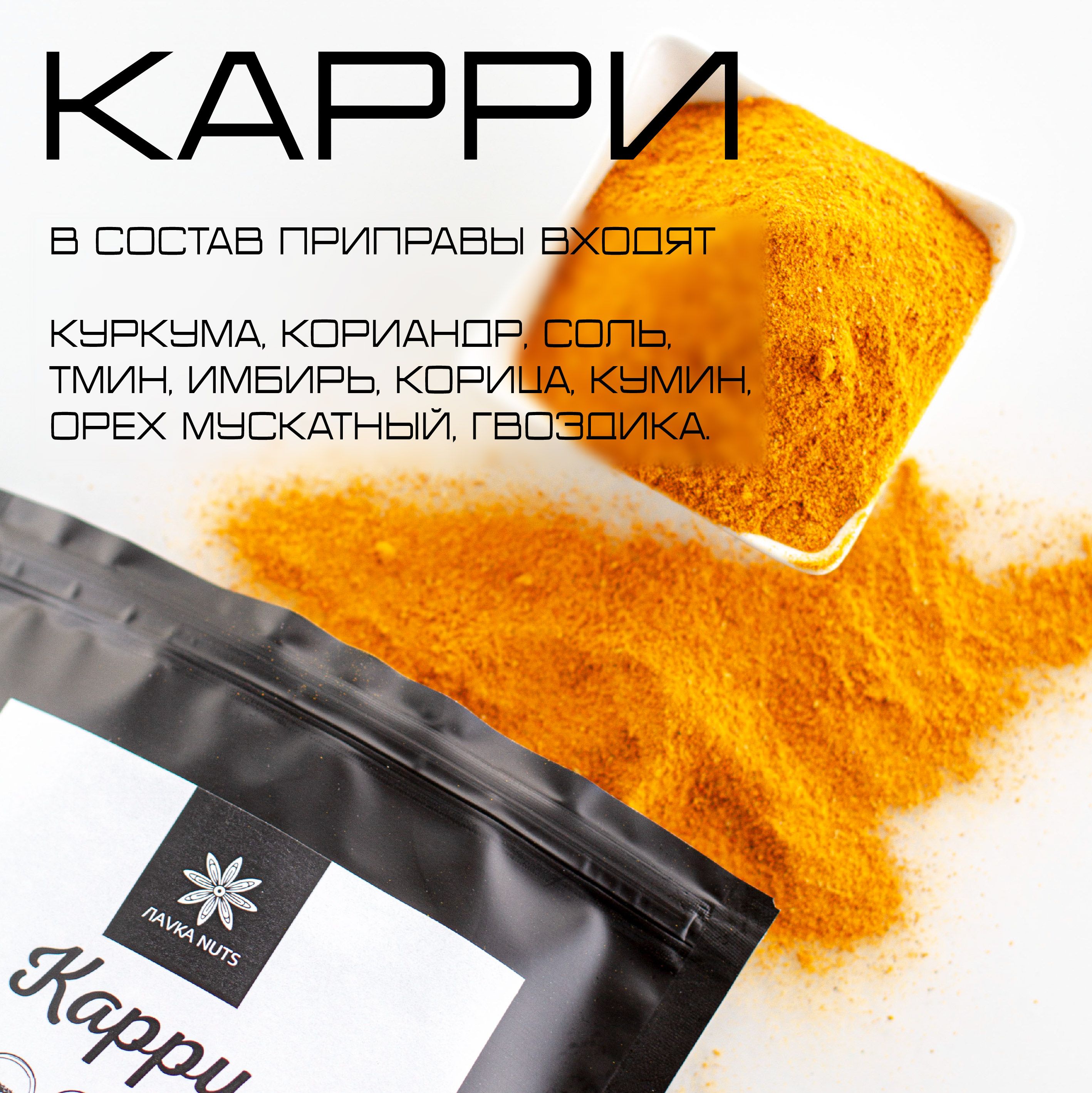 Описание: Текст при отключенной в браузере загрузке изображенийКарри нежная приправа — это смесь индийских специйВ состав приправы входят Куркума, кориандр, соль, тмин, имбирь, корица, кумин, орех мускатный, гвоздика.