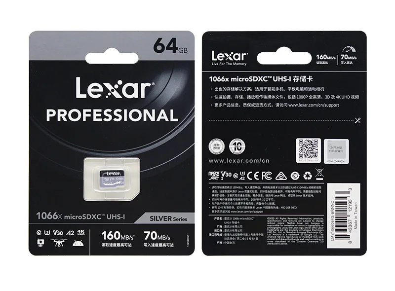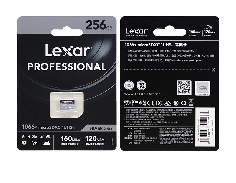 Карта памяти Micro SD Lexar 1066x, серия Silver, 64 ГБ, 128 ГБ, 256 ГБ, SDXC, высокоскоростная TF-карта V30, A2Memory для камеры 4K