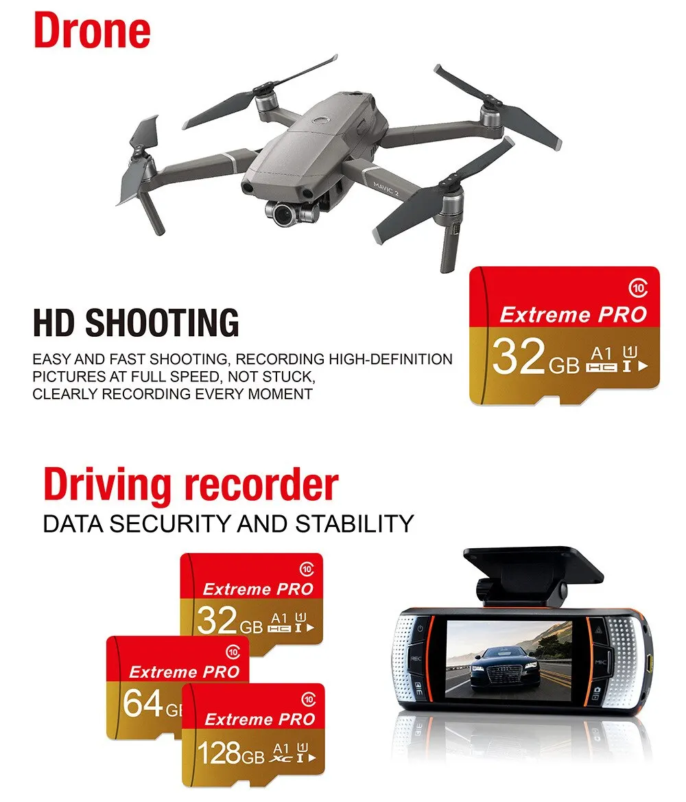 • Карта памяти мобильного телефона Extreme PRO :Эта карта Micro SD предназначена для высокоскоростной передачи данных, что делает ее идеальной для использования с мобильными телефонами и другими устройствами, которым требуется высокая скорость передачи данных.