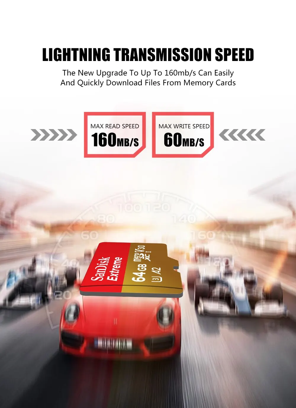 Скорость чтения: до 160 МБ/С/Скорость записи: до 60 МБ/С/Класс скорости: класс 10 U3 A2 V30