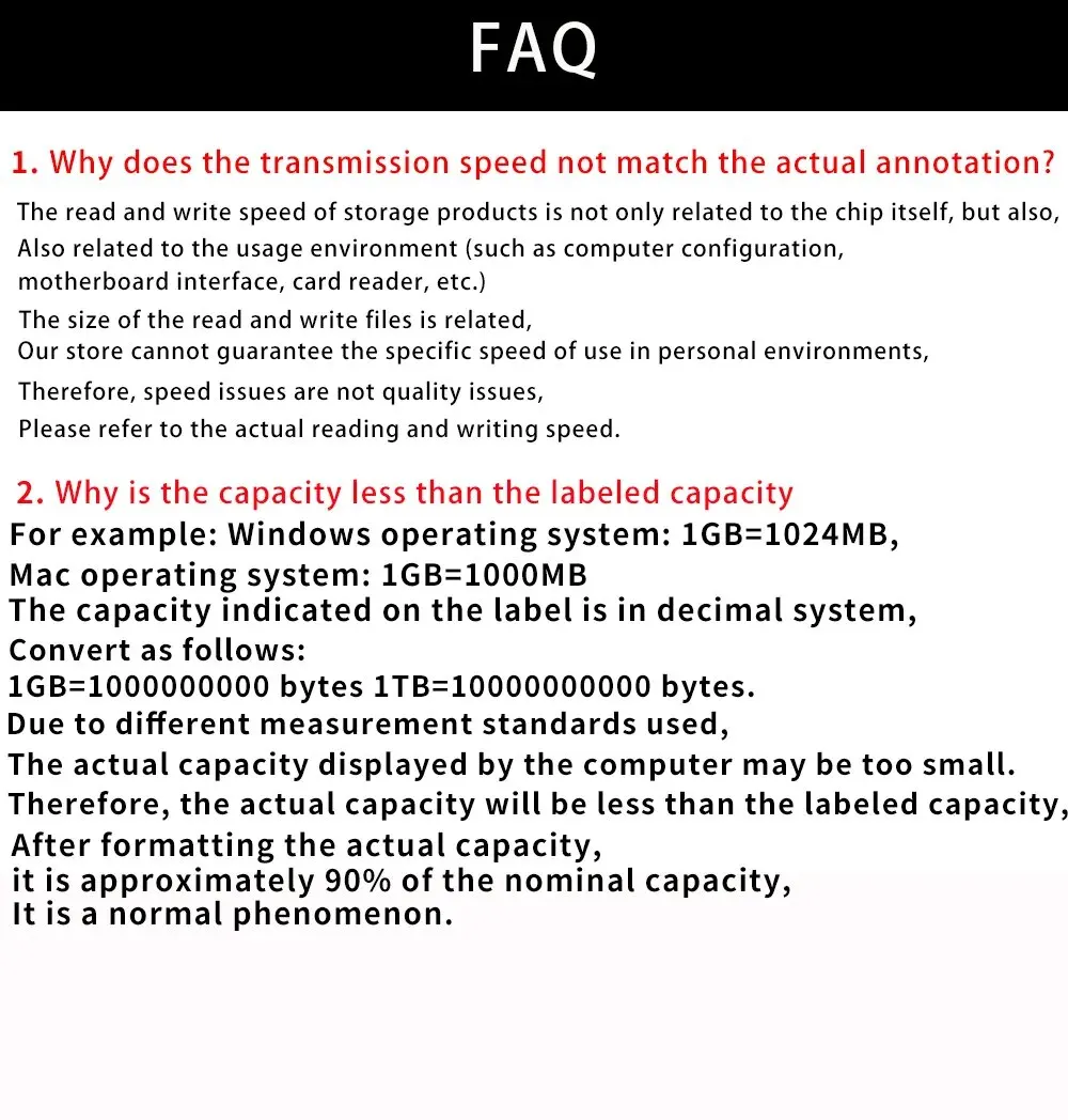 3. Скорость карты памяти Micro SD сильно зависит от устройства чтения карт и выбранной емкости, порта USB и т. Д. Устройство низкого качества на 100% замедлит скорость карты, 1 МБ = 1000 КБ.