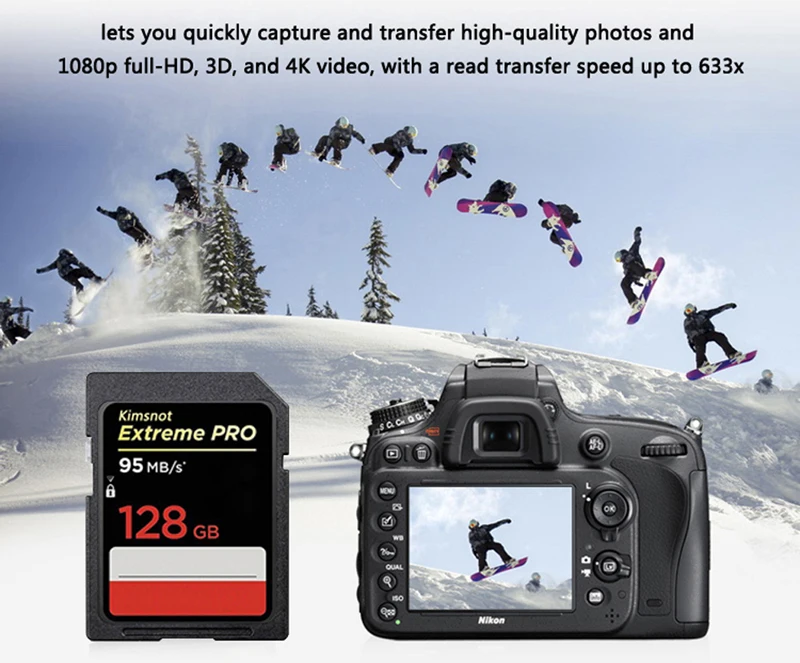 Карта памяти SDXC Kimsnot, высокоскоростная карта памяти класса 10, 95, МБ/с., 64, 128, 256 ГБ, 16, 32 ГБ, SDHC, 633x, UHS-1