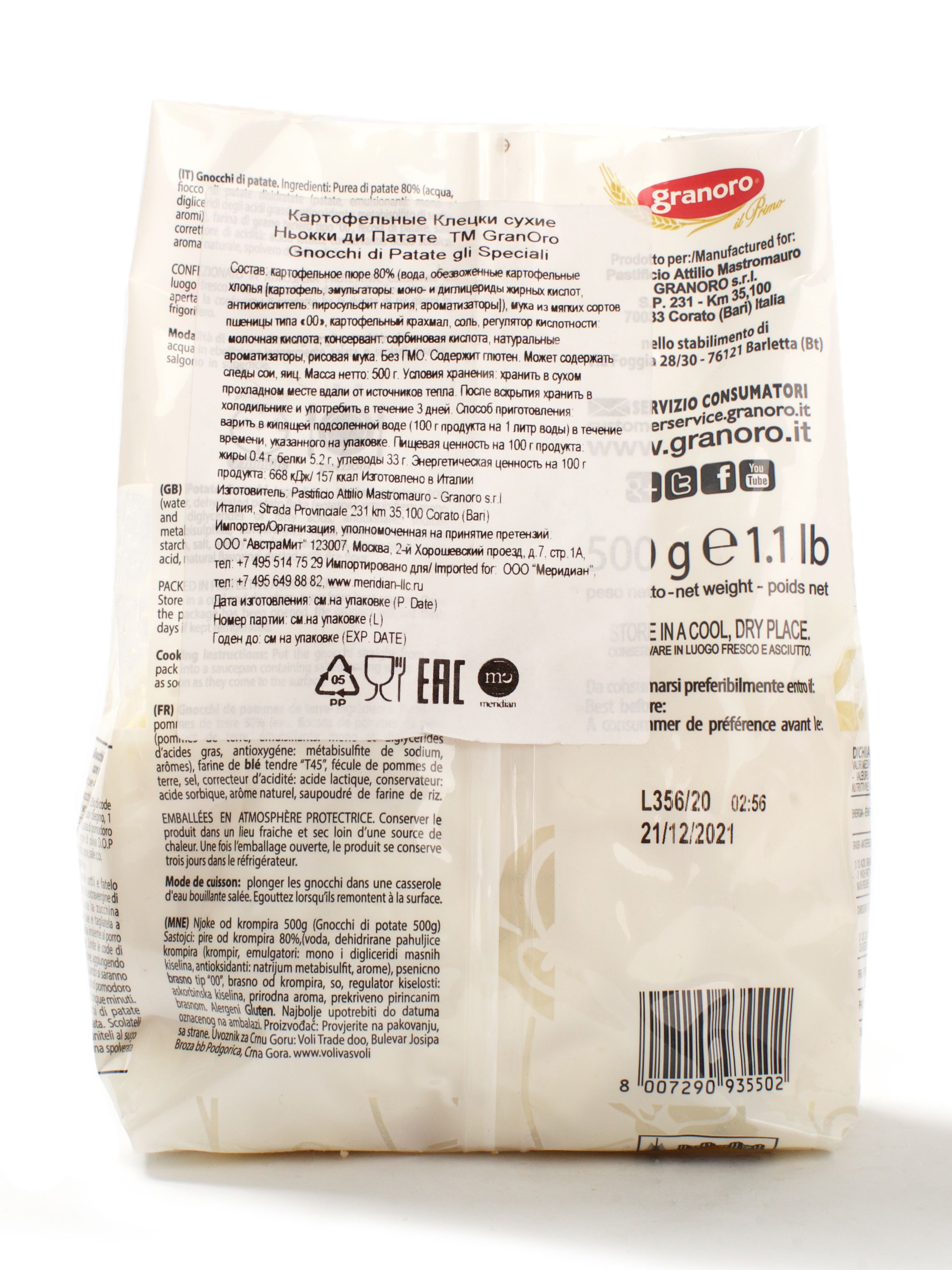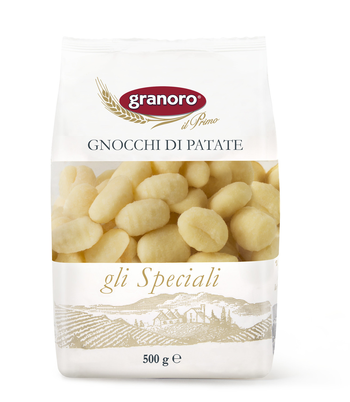 Картофельные клецки Granoro изготавливаются ремесленным способом – вручную. После приготовления они остаются плотными, но мягкими, сохраняя все преимущества и уникальность домашнего теста. Клецки уместны на любом столе, это простое и сытное блюдо быстрого приготовления. К ним рекомендуются соусы и приправы Granoro, например, соус болоньезе.