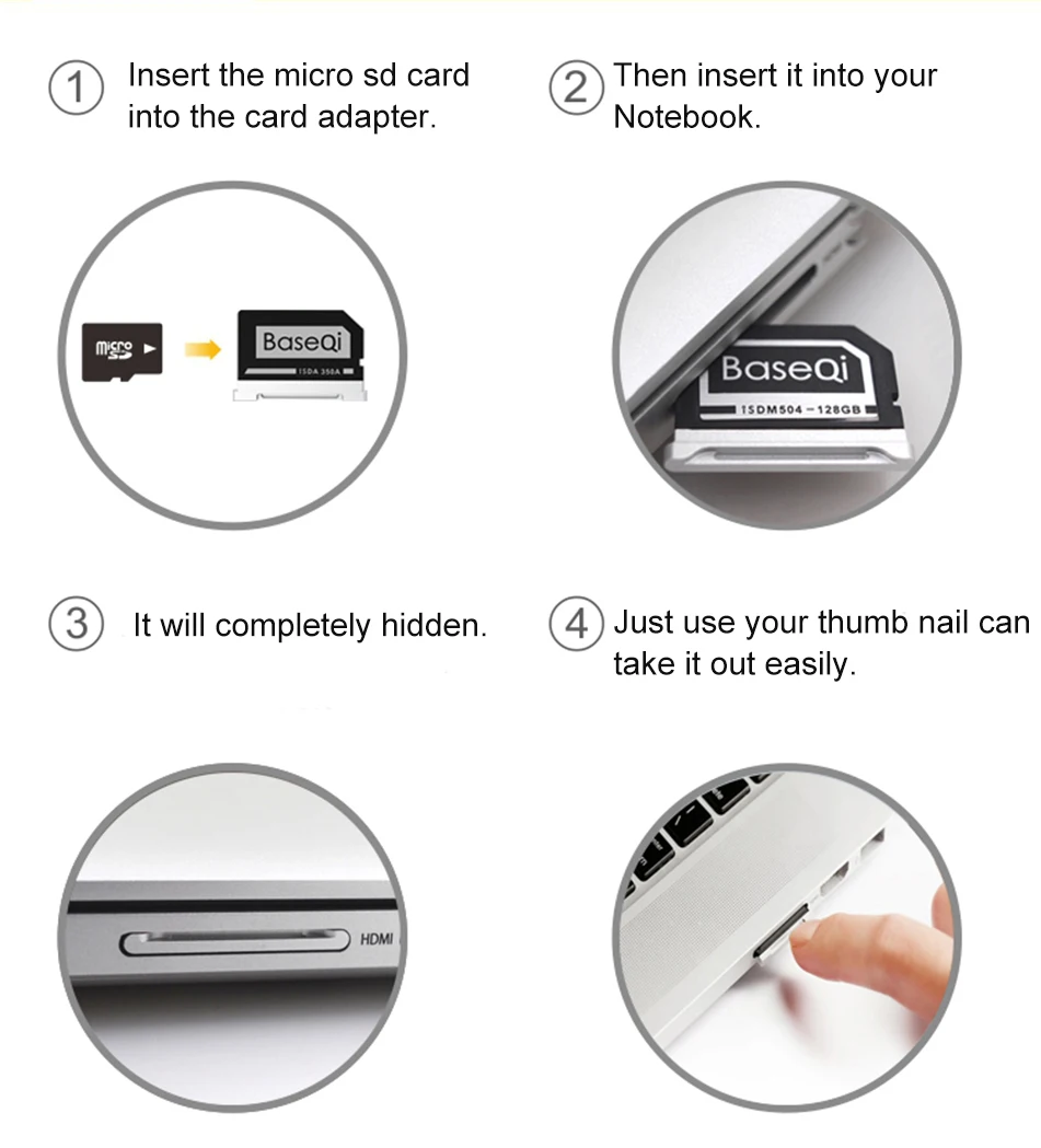 3) Если вы вставили карту micro sd, она все еще не работает, вы можете перезагрузить ноутбук/ноутбук. Если все еще не работает, пожалуйста, используйтеОбычный SD адаптер и та же micro sd карта, чтобы положить вНоутбук/ноутбукЧтобы узнать, есть ли у вас проблема с картой micro sd. Но если та же карта microsd может работать в обычном sd адаптере, пожалуйста, не стесняйтесь связаться с нами для послепродажного обслуживания клиентов вместо того, чтобы дать нам нейтральный отзывы или отрицательный отзывы. Мы рады помочь вам решить проблему и дадим вам удовлетворительный ответ.