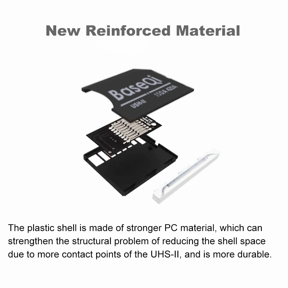 * Новый армированный материал: пластиковый корпус изготовлен из более прочного поликарбоната, который может усилить структурную проблему уменьшения пространства корпуса из-за большего количества точек контакта UHS-Il, И более прочный.