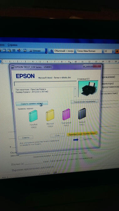 3. Установка правильная, принтер выдаст запрос о полном объеме чернил.