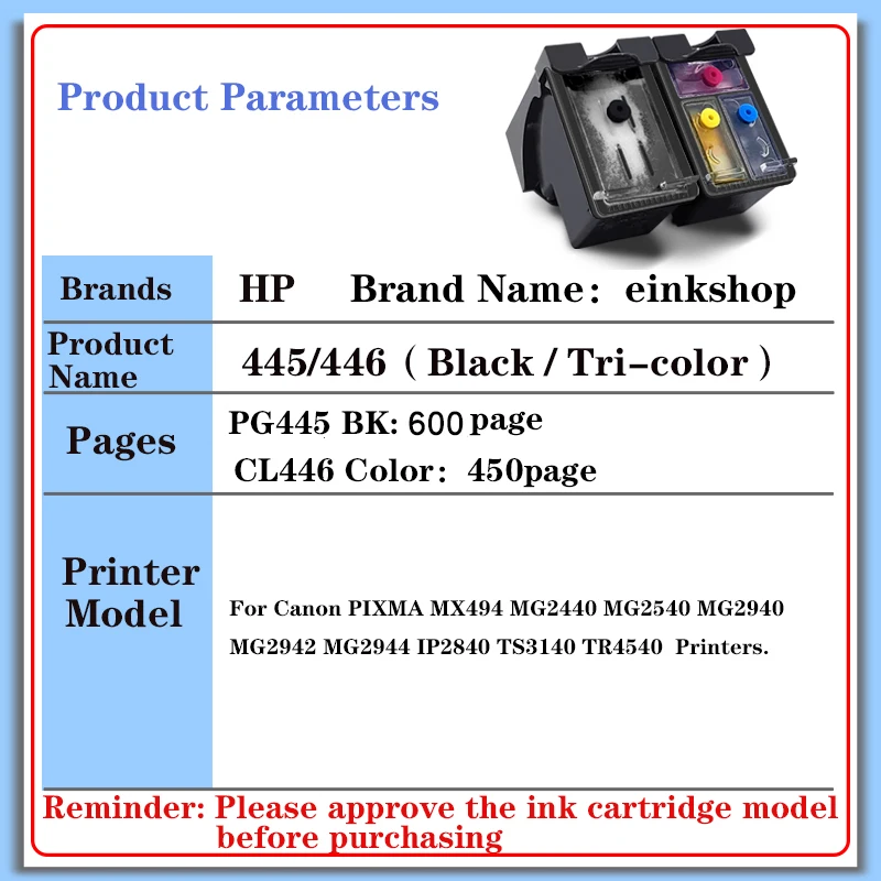 Заправка картриджа Einkshop для Canon PG 445 CL 446 XL PG-445 для Canon Pixma MX494 MG 2440 2540 2940 2540 принтер IP2840